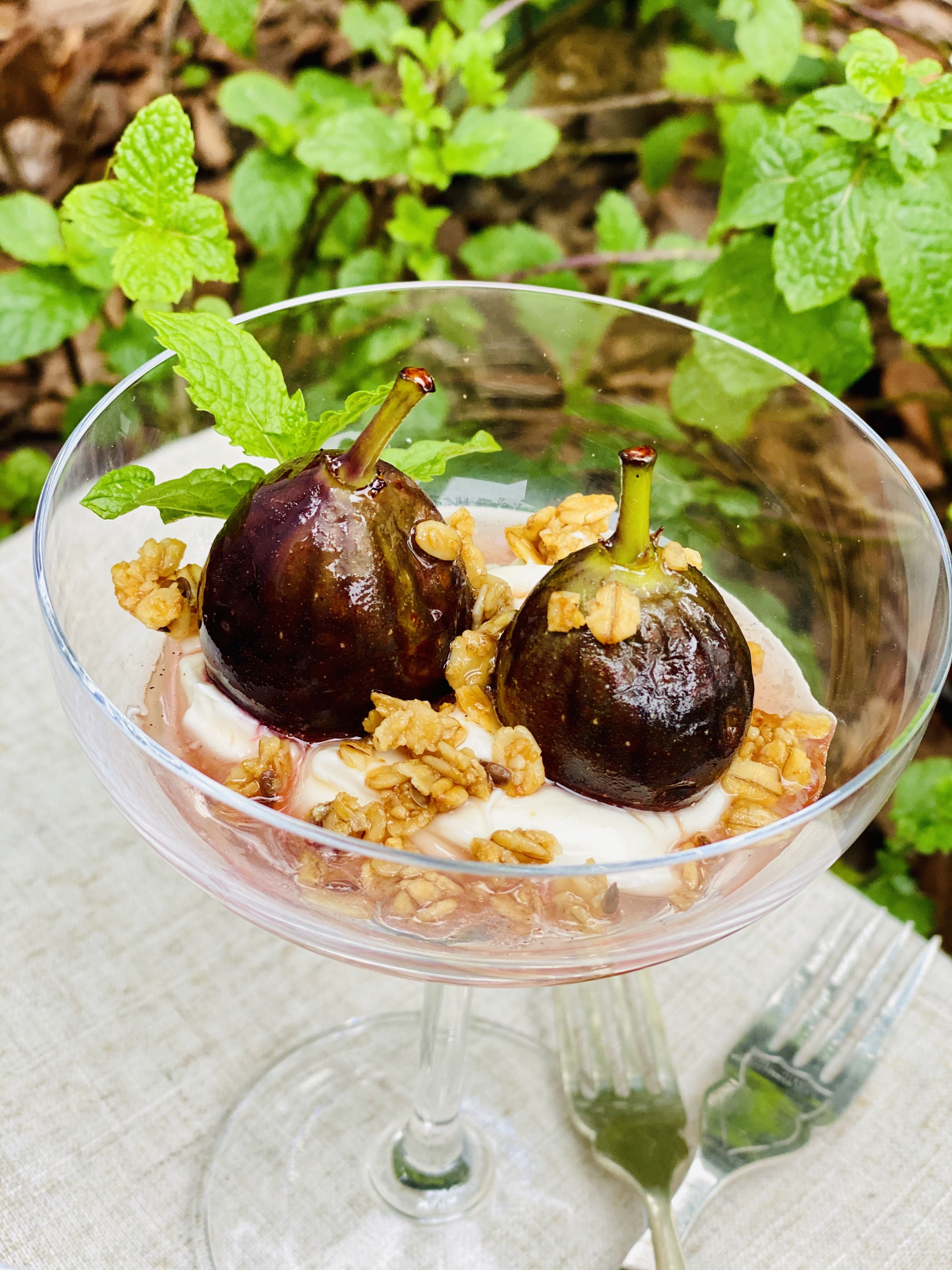 This fig dish is an elegant offering for breakfast or brunch, especially when you serve it in a stemmed glass with honey yogurt and crunchy granola.