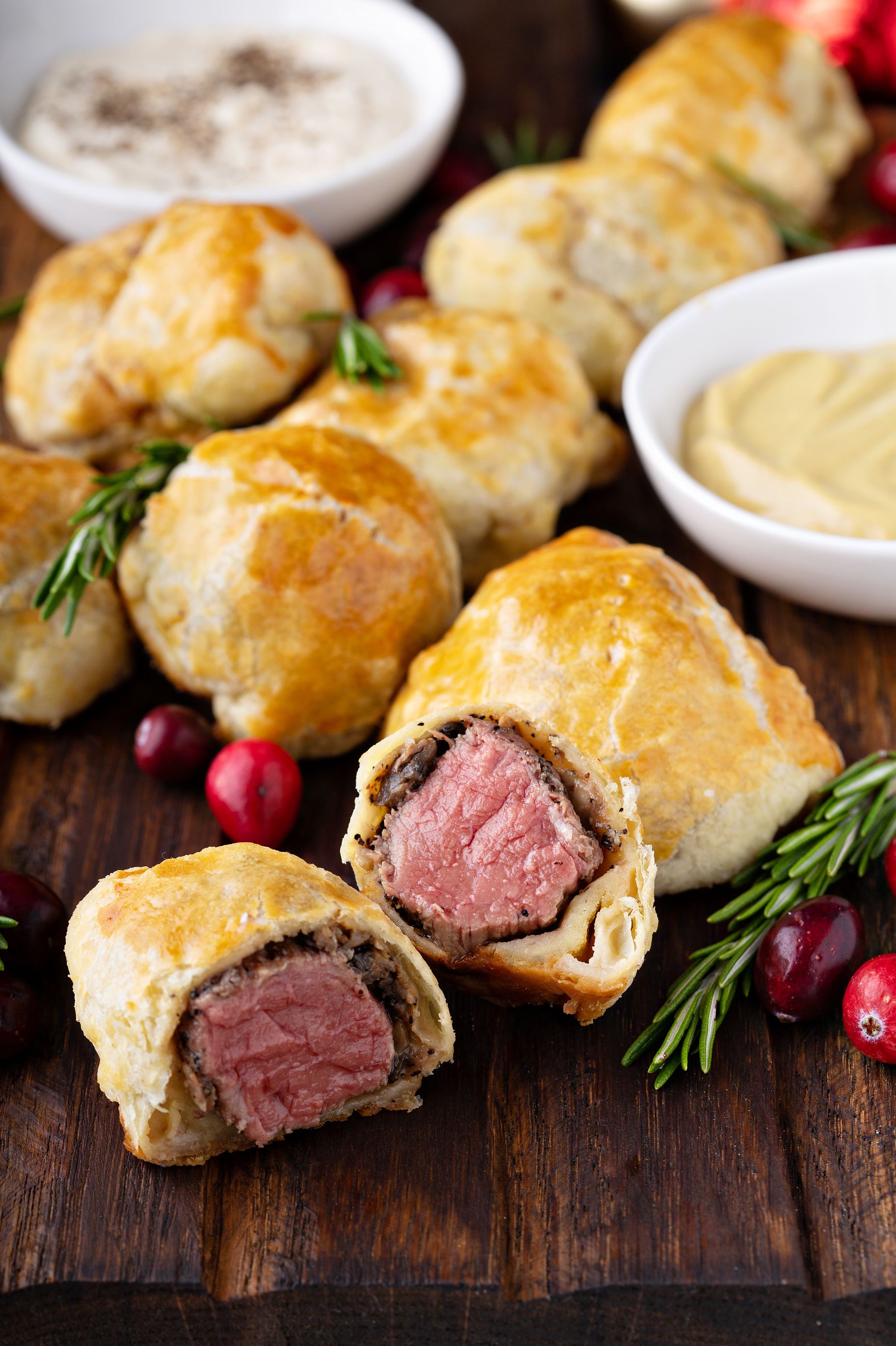 Both easy and elegant, these mini beef Wellingtons (from Festive Flavors of Ireland) are perfect any-time appetizers. Use top quality beef tenderloin for best results, and for more intense flavor, mix wild and white mushrooms. Serve with Herb Mayonnaise (recipe follows), if desired.