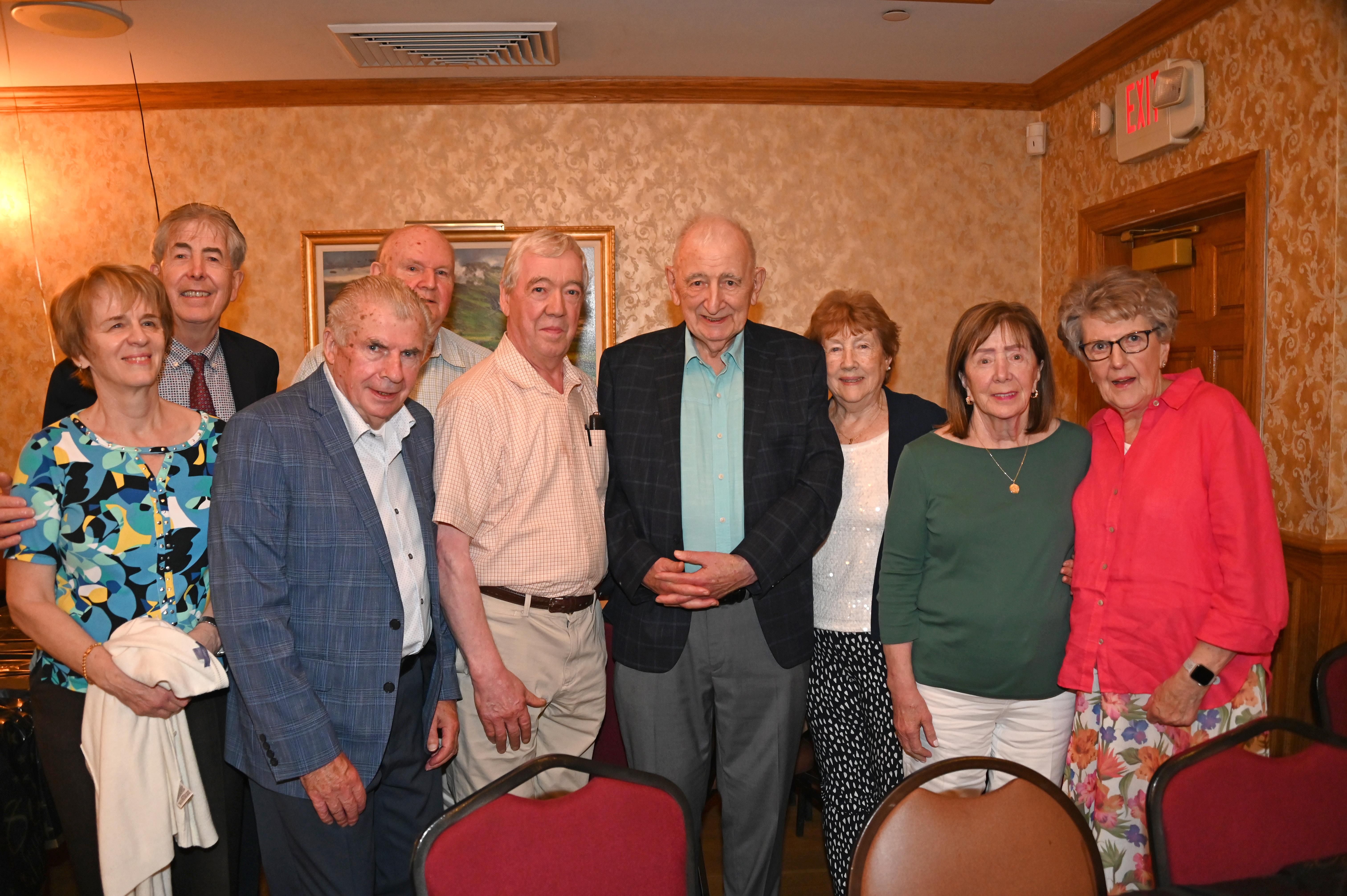 Gerry O'Shea, center with the dark jacket, is pictured with, from left, Bernadette Moran, Michael Moran, John Daly, Tim O'Shea, Jimmy O'Connor, Mary Daly, Sally O'Shea, and Margaret "Nano" O'Connor. [Photo by Nuala Purcell]