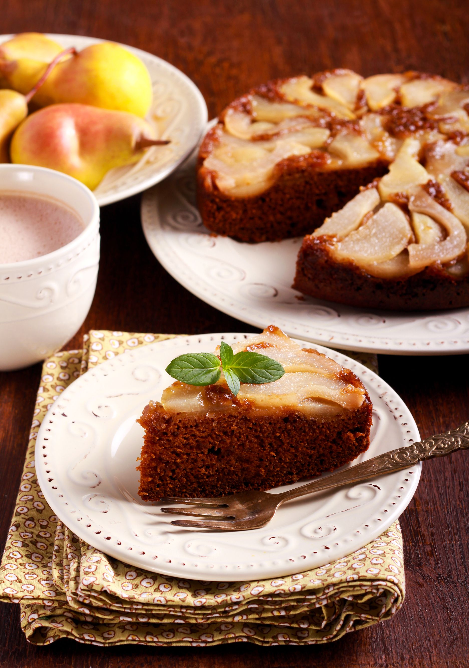 This pudding is a riff on steamed Christmas pudding and gingerbread. It starts with gooey pears on the bottom and finishes when the cake is turned upside down to reveal them as a deliciously gooey top! In between is a rich, dark, and spicy ginger cake that simply begs to be topped with whipped or clotted cream!