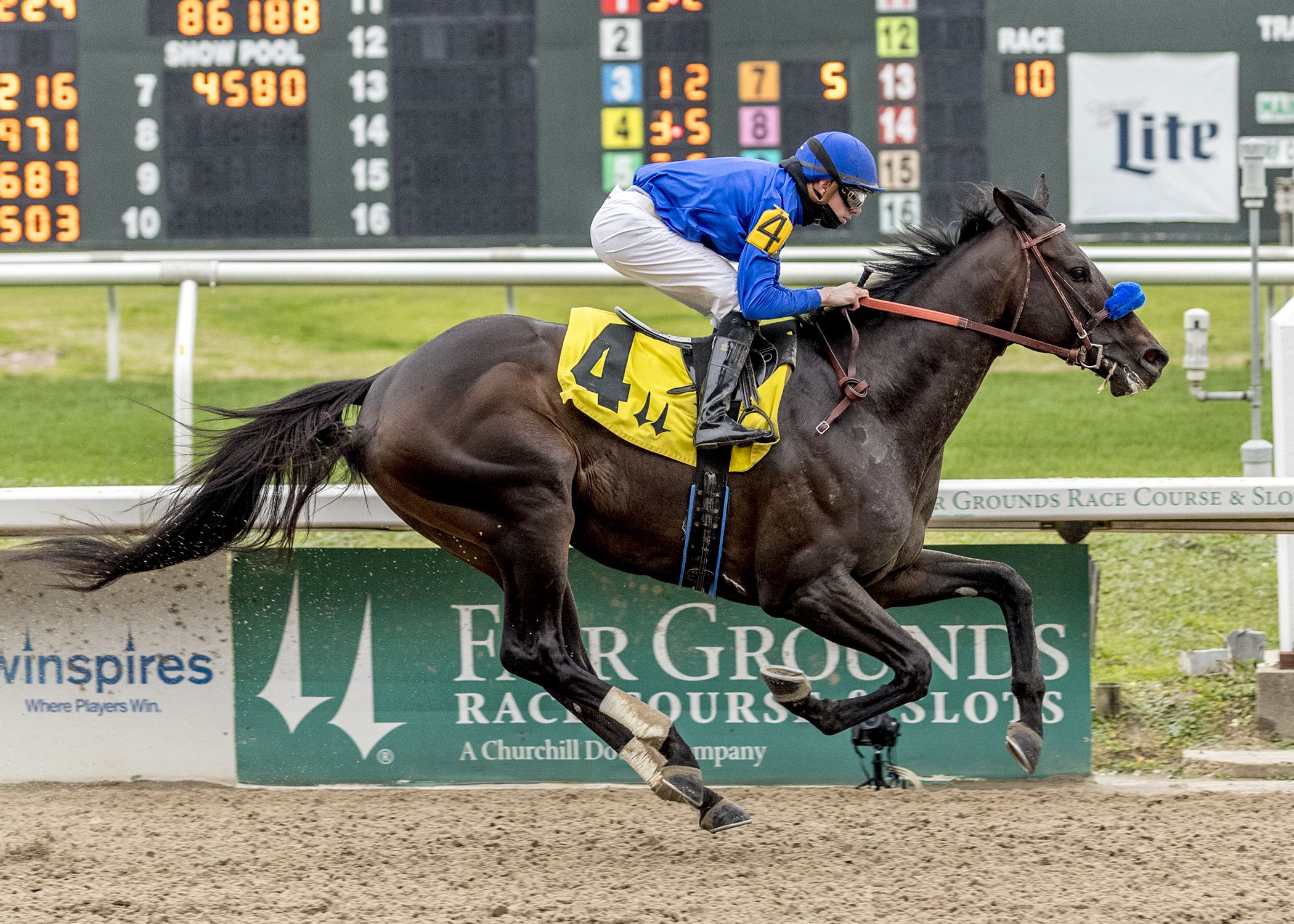 [Maxfield shown winning the Mineshaft Stakes at Fair Grounds in February. LOU HODGES]