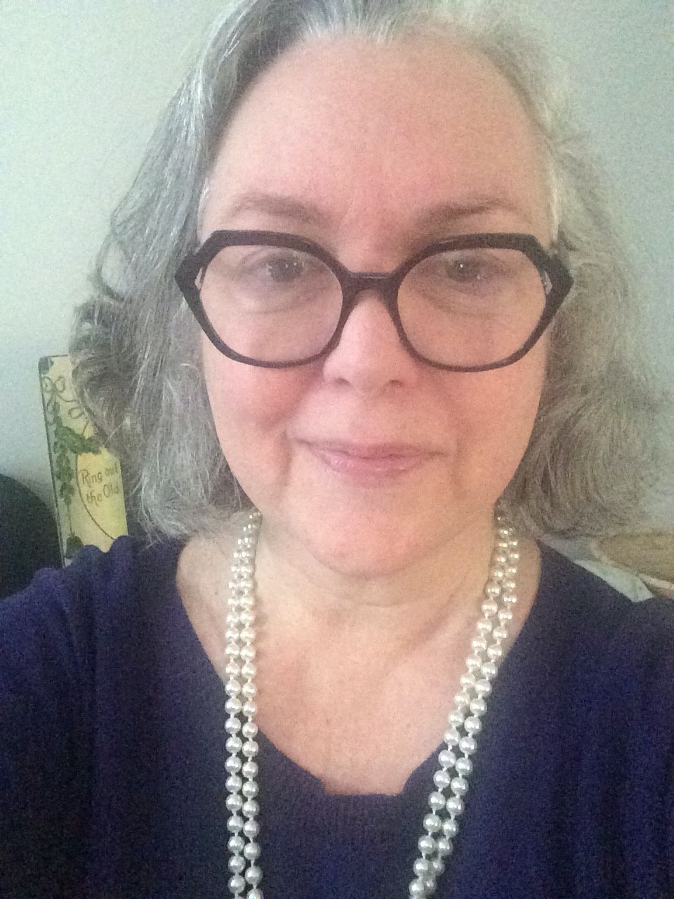 Next up was Sarah Fearon, an expert dispeller of gloom, with some new comedy material to try out on the virtual crowd. She had them laughing at her take on Covid and other current matters, including the plight of living-alone singles. Commenting on NY Gov. Cuomo’s recent resignation, Sarah quipped, “First thing that comes to mind is: There’s a real estate client!” (Fearon is one of New York City’s top real estate agents. Her comic alter-ego, Snazzy Peabody —a real estate legend in her own mind— was the star of a short film that was a finalist in the Ladies of Laughter 2021 competition).