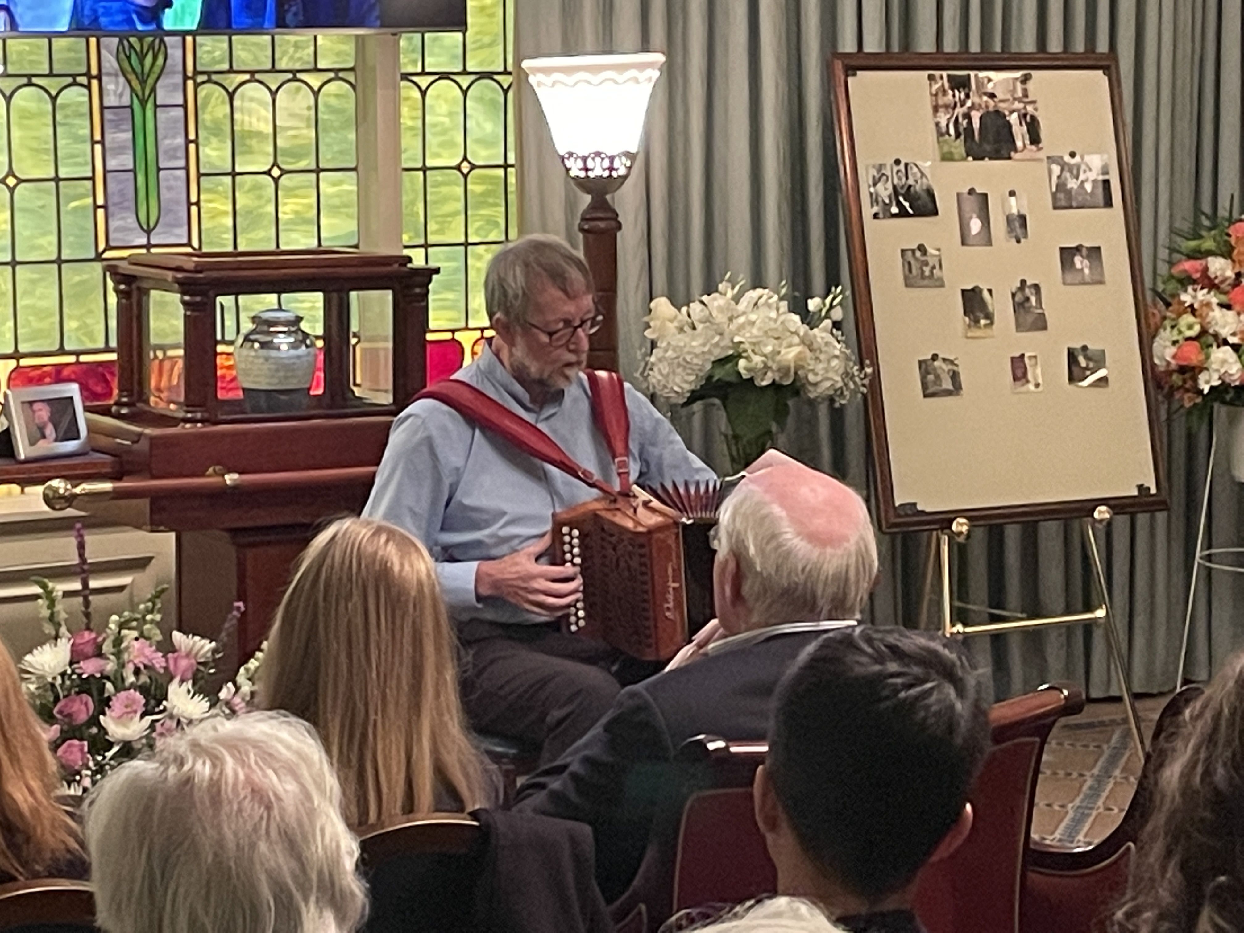 “Mind Yourself” was a fitting name, as it was Mick’s preferred parting phrase, and was a brilliant event. The musicians invited to participate included Green Fields of America members Athena Tergis (fiddle), Liz Hanley (fiddle), Brenda Castles (concertina), and Brendan Dolan (piano), with additional guests being Anna Colliton (bodhrán) and yours truly (octave mandolin). We ran through Moloney standards including “Hard Times Come Again No More,” “McNally’s Row of Flats,” and “The Boatman Song.” In addition, Sloan opened the event with an impassioned a cappella version of “When the Saints Go Marching In.”