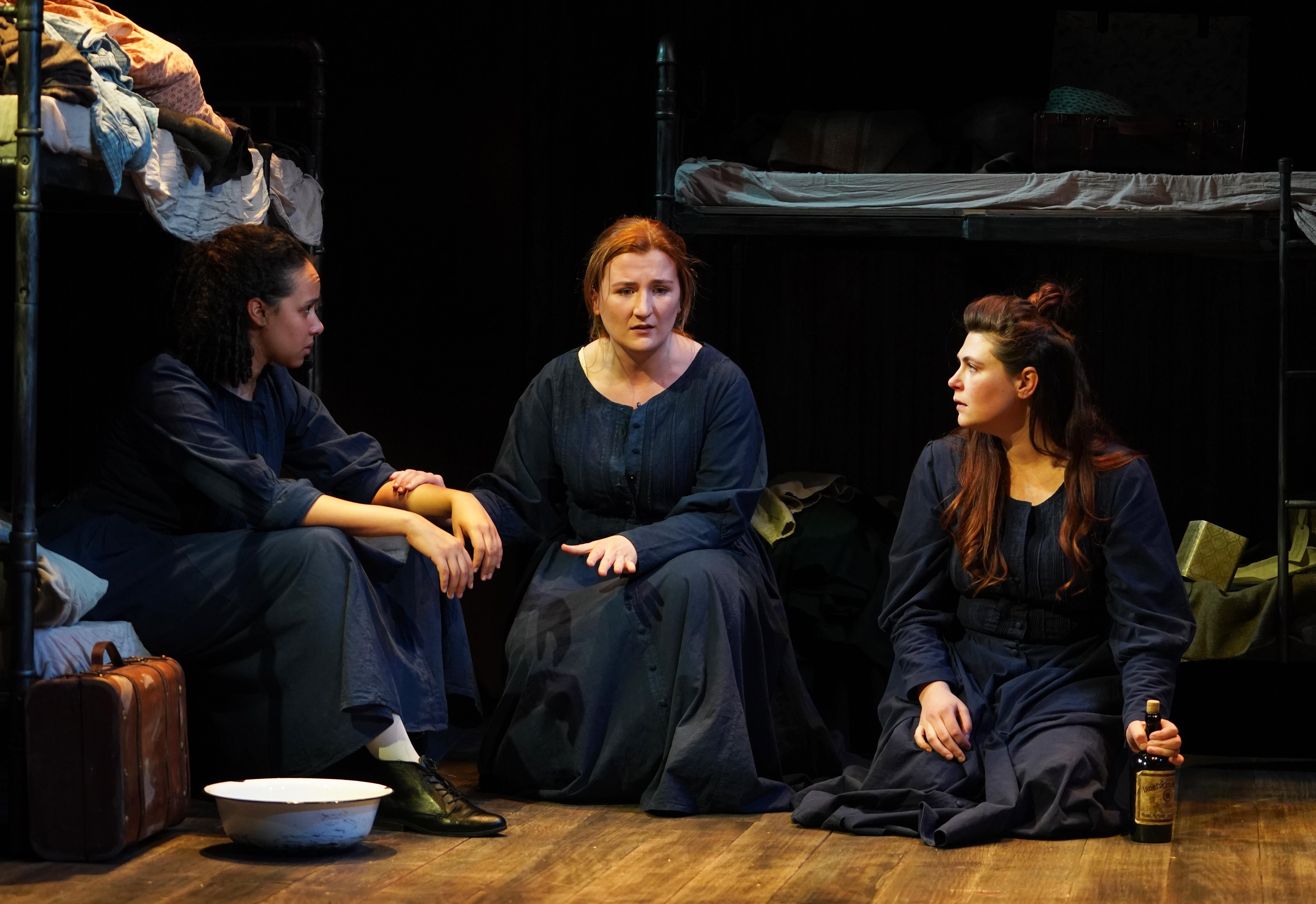 Caroline Strange, Labhaoise Magee, and Mary Mallen in Irish Rep's 2022 production of "Belfast Girls." PHOTO BY CAROL ROSEGG