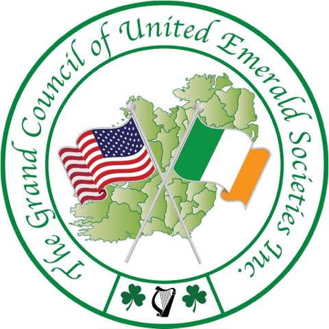 In the Spring of 1974, Frank Cull, legendary Irish Echo columnist “Round the Emerald Green,” was approached to mediate a merger and was named Pro-Temp. Attorney Thomas McCarthy set out to settle differences in constitutions, by-laws, treasuries, and other legal matters. Thomas Reilly of the PAPD ES suggested the delegate body overwhelmingly accepted the name, Grand Council of United Emerald Societies (emphasizing “United”), and Paul Cinder of the MABSTOA ES designed the logo.