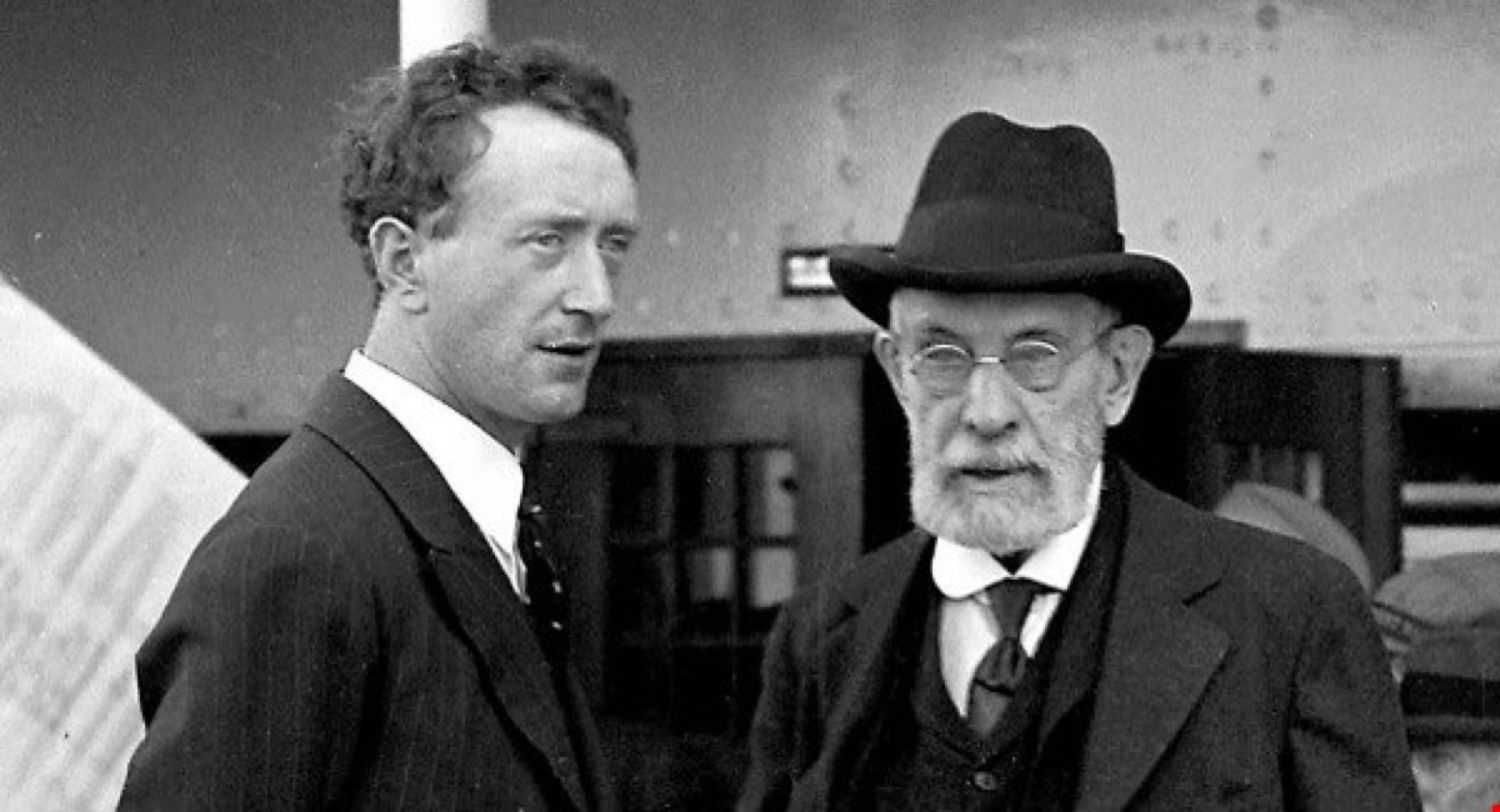 Irish Minister for External Affairs Desmond Fitzgerald, right, greeted Irish-American leader John Devoy upon his arrival at Cobh, Co. Cork, in 1924.
