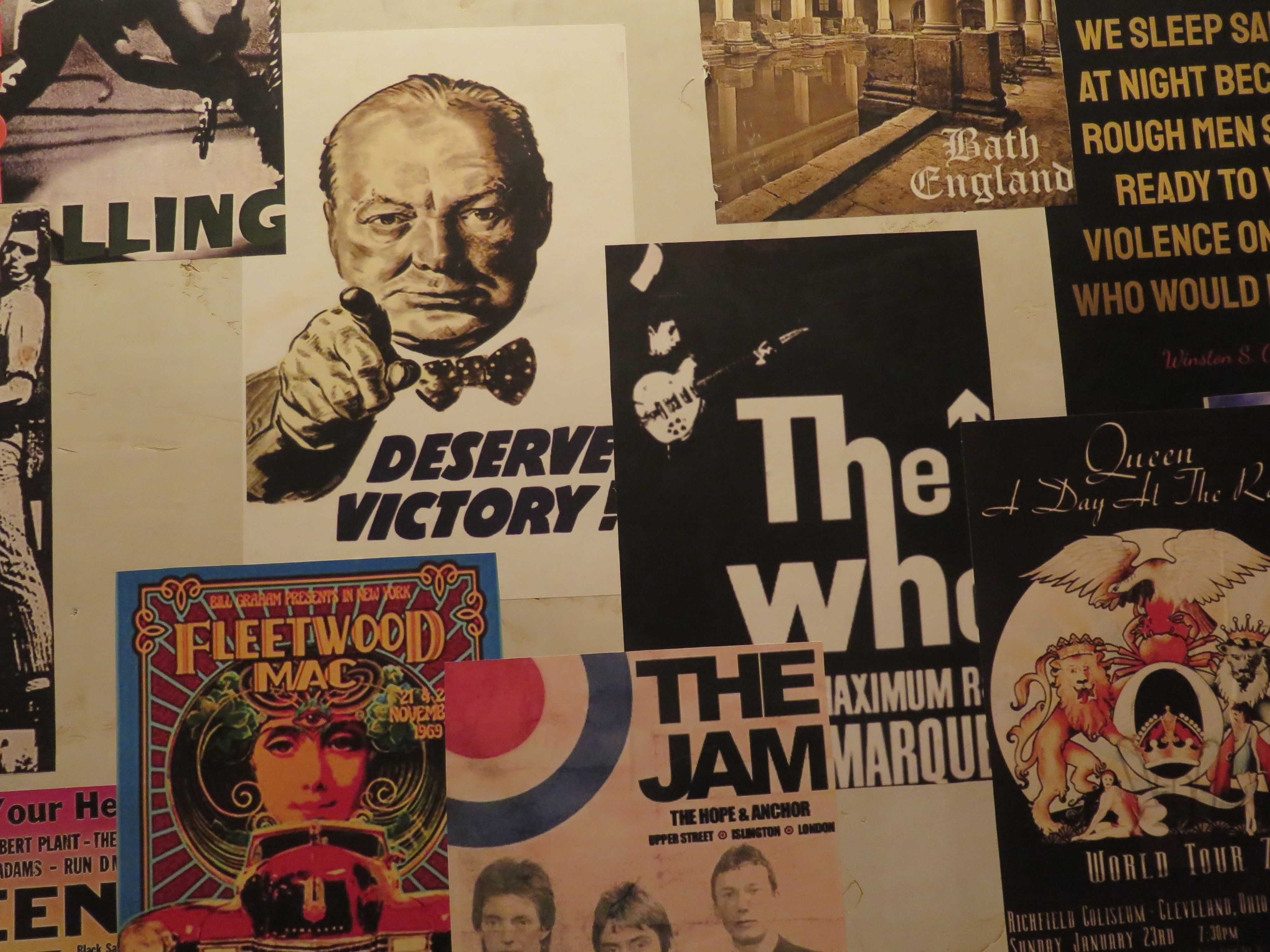 Posters in the Churchill's stairway up to the second floor.