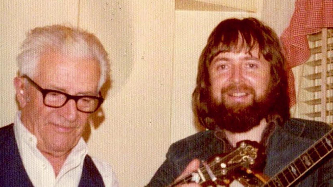 Mick Moloney pictured during the early part of his career in the U.S with Mike Flanagan, of Flanagan Brothers fame, the first person to record Irish tunes on the tenor banjo and a major influence on Moloney.