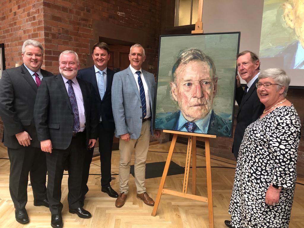 David Trimble, his wife Daphne and his former Special Advisors, including Ray Hayden, second from left, admire Colin Davidson’s painting.