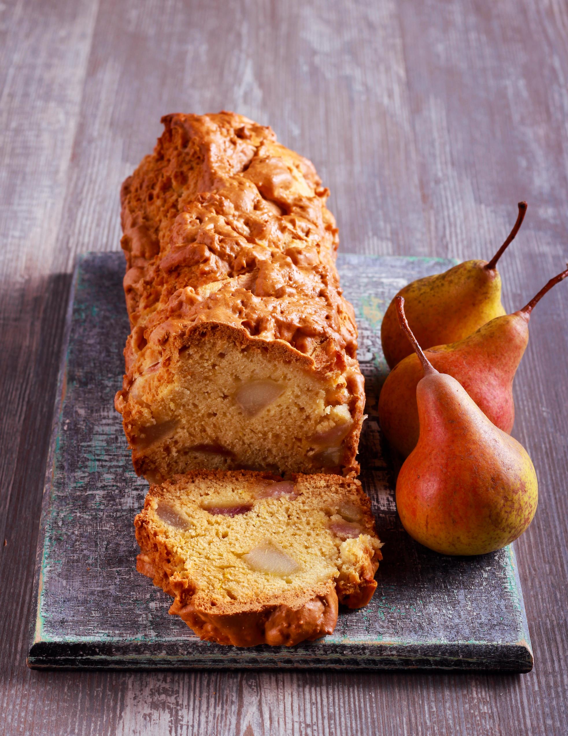 There are over 3,000 known pear varieties grown around the world, each with a distinctive character, texture, and flavor. The most popular and recognizable pears are the yellow Bartlett, with a true pear shape, followed by the elegant, egg-shaped Anjou, (also called d’Anjou), the graceful Bosc, pudgy Comice, and tiniest Forelle. Crisp, crunchy, and sweet, U.S.-grown pears are harvested from the middle of August through the end of November. This loaf is perfect on its own or topped with a light streusel.