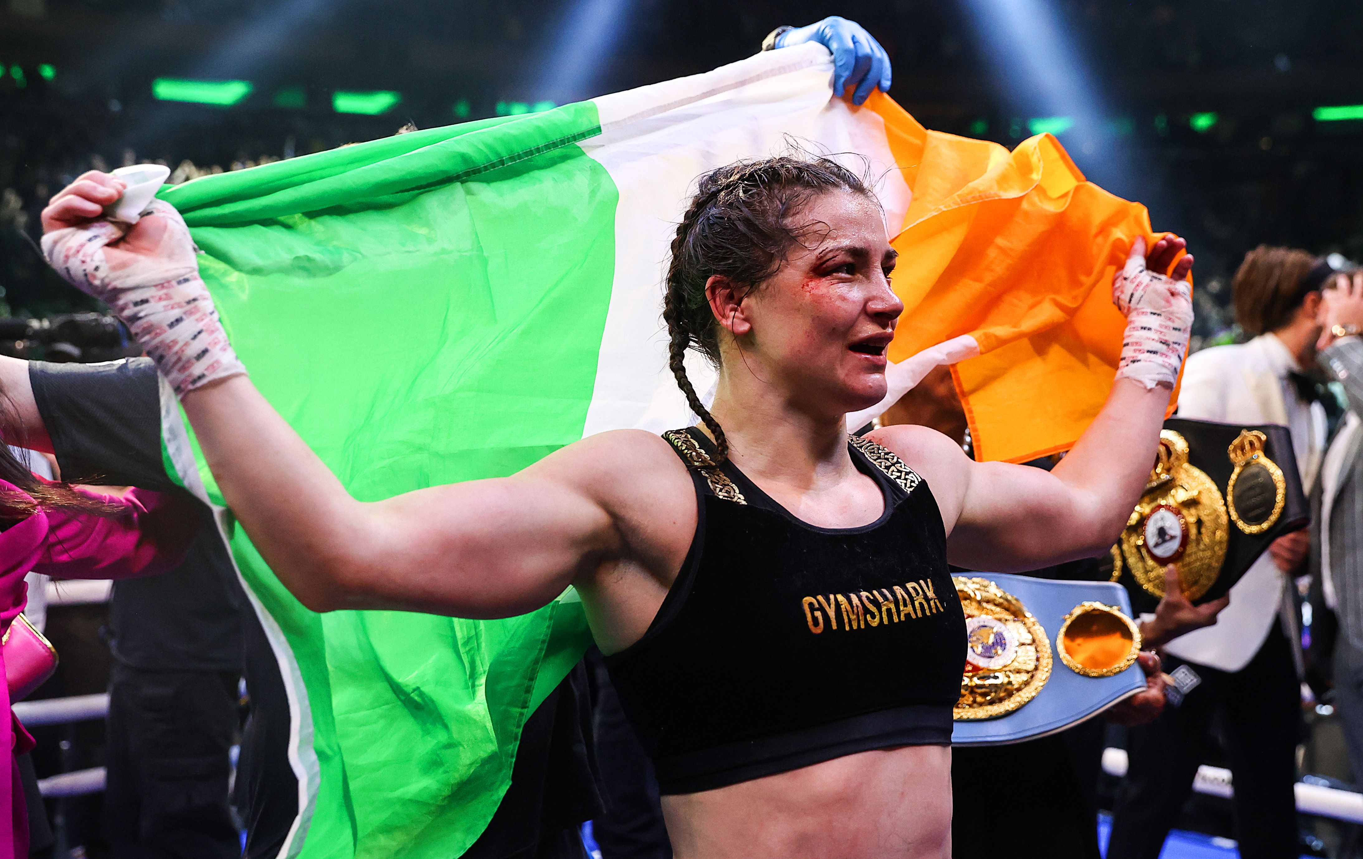 Katie Taylor celebrating her win at Madison Square Garden on April 30. Inpho/Gary Carr