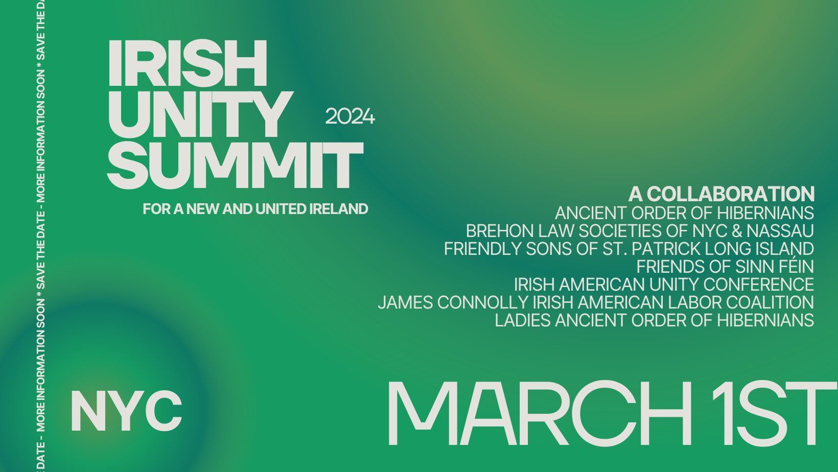 Seven key Irish-American organisations have announced an "Irish Unity Summit – For a New and United Ireland" to be held in New York on March 1 next year.