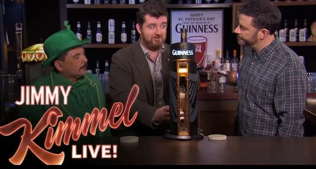 He took to it. Next thing he’s on Jimmy Kimmell Live teaching how to pour the proper pint and a lot of Hollywood stuff with all the LA perks and the likes of Joe Montana and Nick Offerman. “So basically if you see a Guinness commercial on TV here in the US and you see a pint of Guinness, I’m the guy who poured it.”
