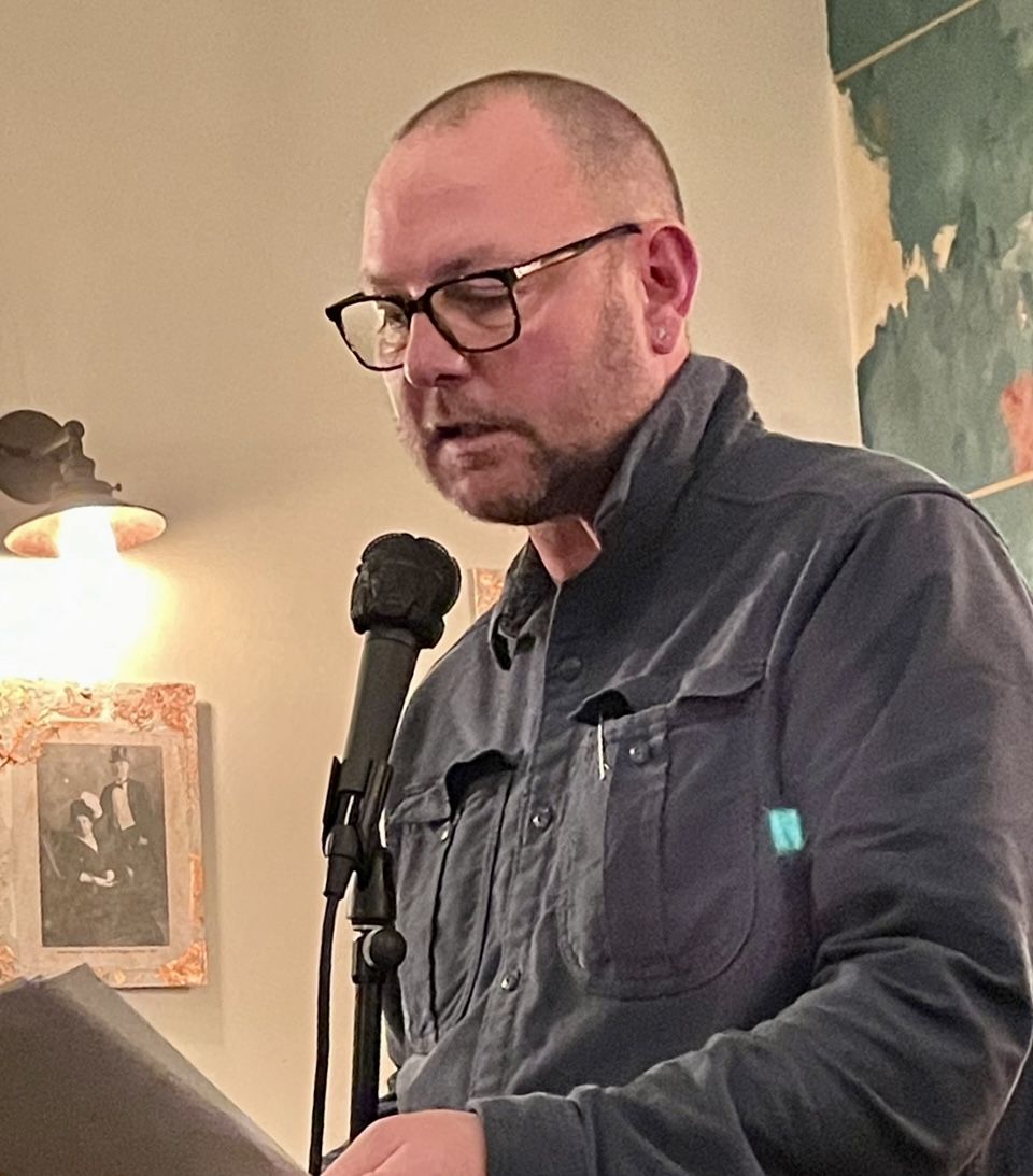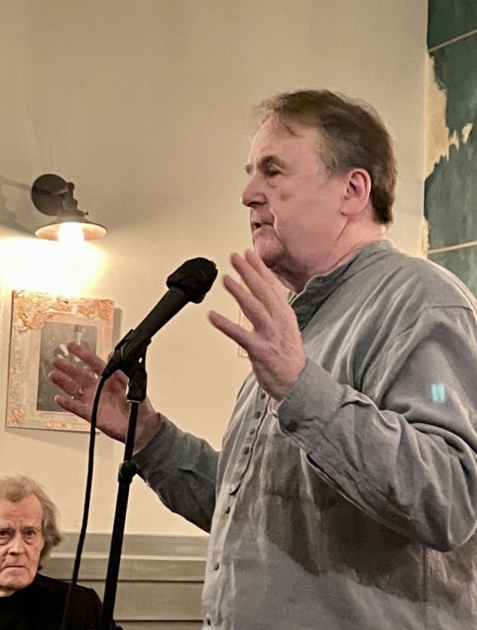 Next, Anthony C. Murphy entertained with a droll yarn about an episode of pancake gluttony prior to Lent. Born in Burton-upon-Trent to a mother from Staffordshire and a father from County Cork. Murphy is a Pushcart-nominated poet and has performed at spoken word events in the UK and USA. He is the author of the novel “Shiftless,” available at his website, https://anthonycmurphy.com/.