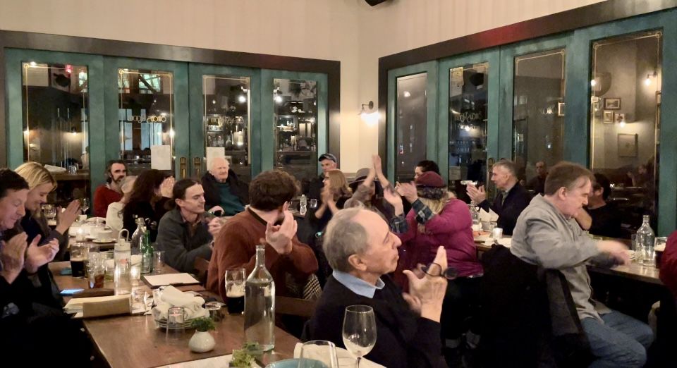 Gordon Gilbert, poet, playwright and frequent host of the salons, launched the first of 2023 at the Ellington restaurant, corner of 105th & Broadway, by introducing Gillian McCourt, granddaughter of Irish American Writers & Artists founder Malachy McCourt. The talented teen charmed the crowd with an essay recounting a memorable day on the playground when she became aware of the diversity of her childhood friends. She followed that with an original song, accompanying herself on the ukulele. An up and coming singer/songwriter, Gillian will launch her first music video in February.