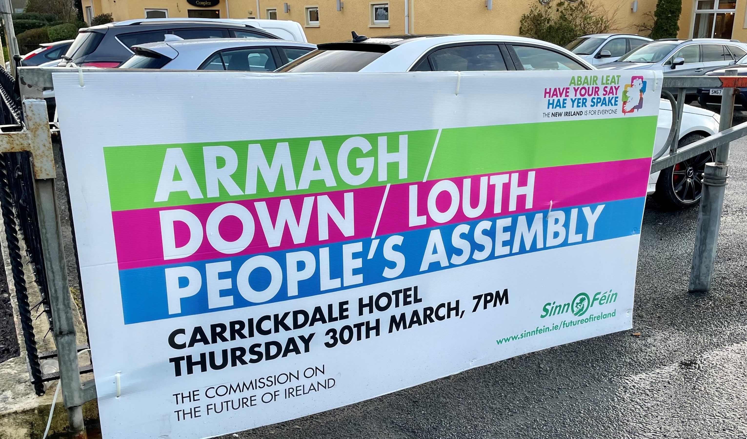 Our last event before leaving Ireland for New York was a Peoples’ Assembly in the Carrickdale Hotel in Carrickcarnon, right on the border in County Louth. This Peoples’ Assembly was an opportunity for citizens from the Armagh, Down and Louth border region to have their say on the future of Ireland.