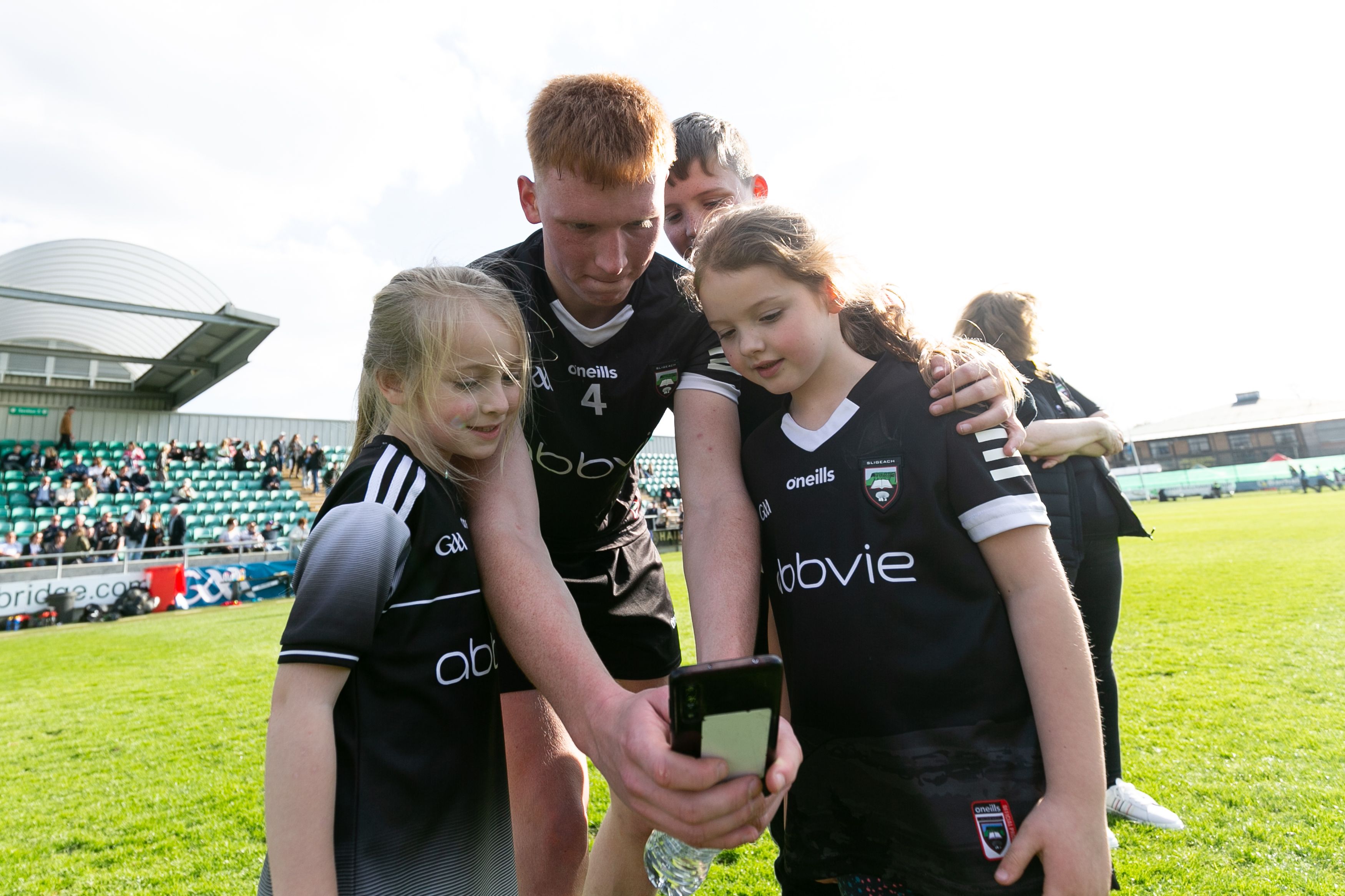 Evan Lyons of Sligo takes a selfie with young fans at McGovern Park, Ruislip, London.[Inpho/Juan Gasparini]