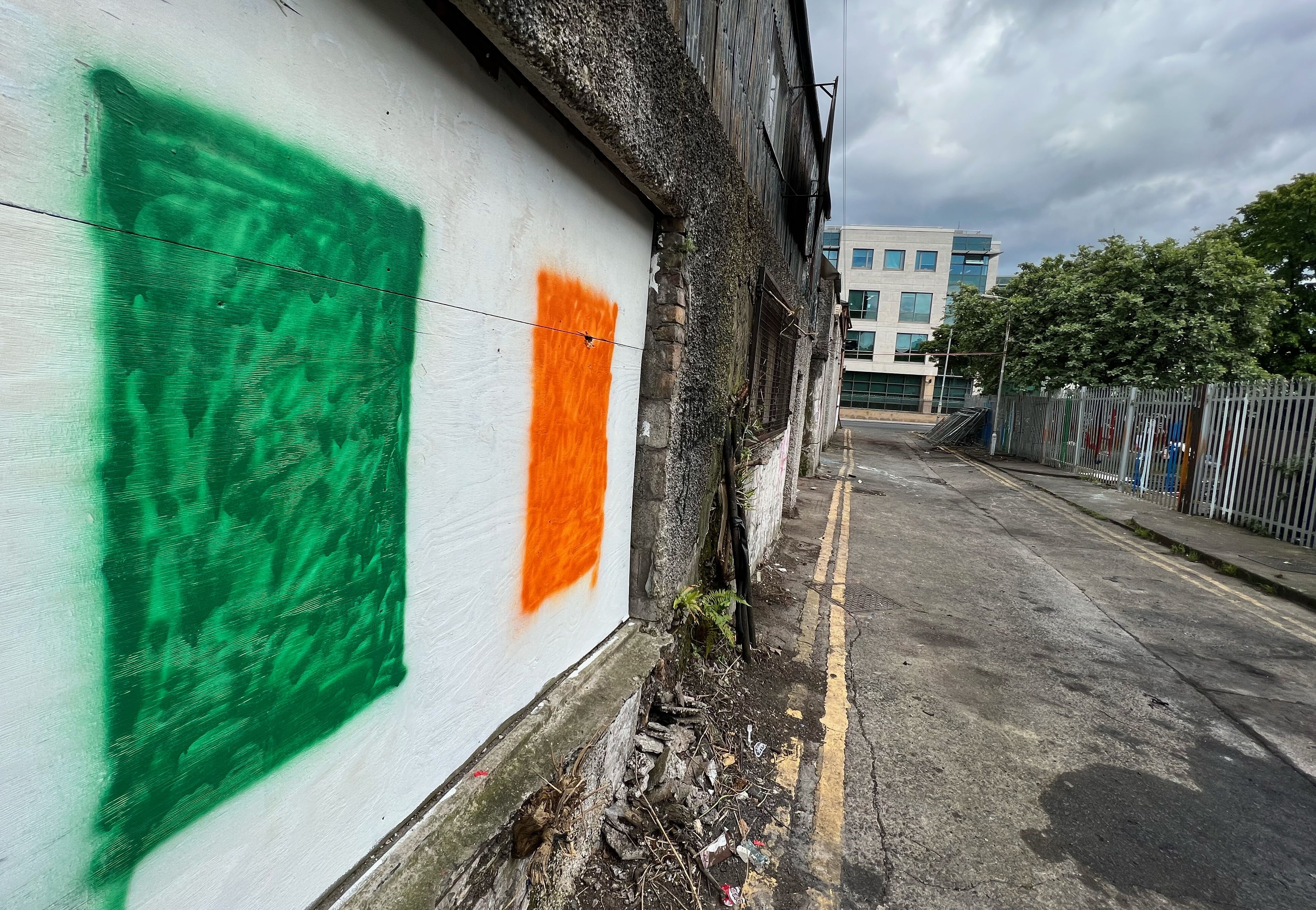 A scene on a lane just off Sandwith Street Upper, in Dublin, where reports suggest that there was a fire after a protest between groups in support of refugees living in the lane and those opposed to them. [Sasko Lazarov/Rolling News.ie]