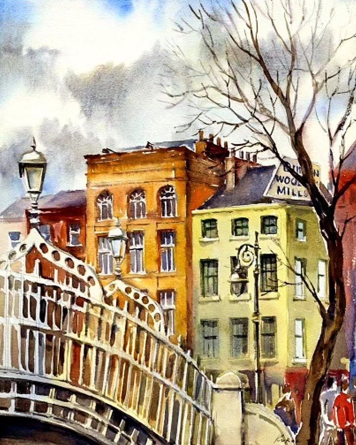 The yellow-fronted Winding Stair painted by Ludmila Korol (korolart.com), an Irish-Ukrainian artist who specializes in oil paintings and fine art prints.
