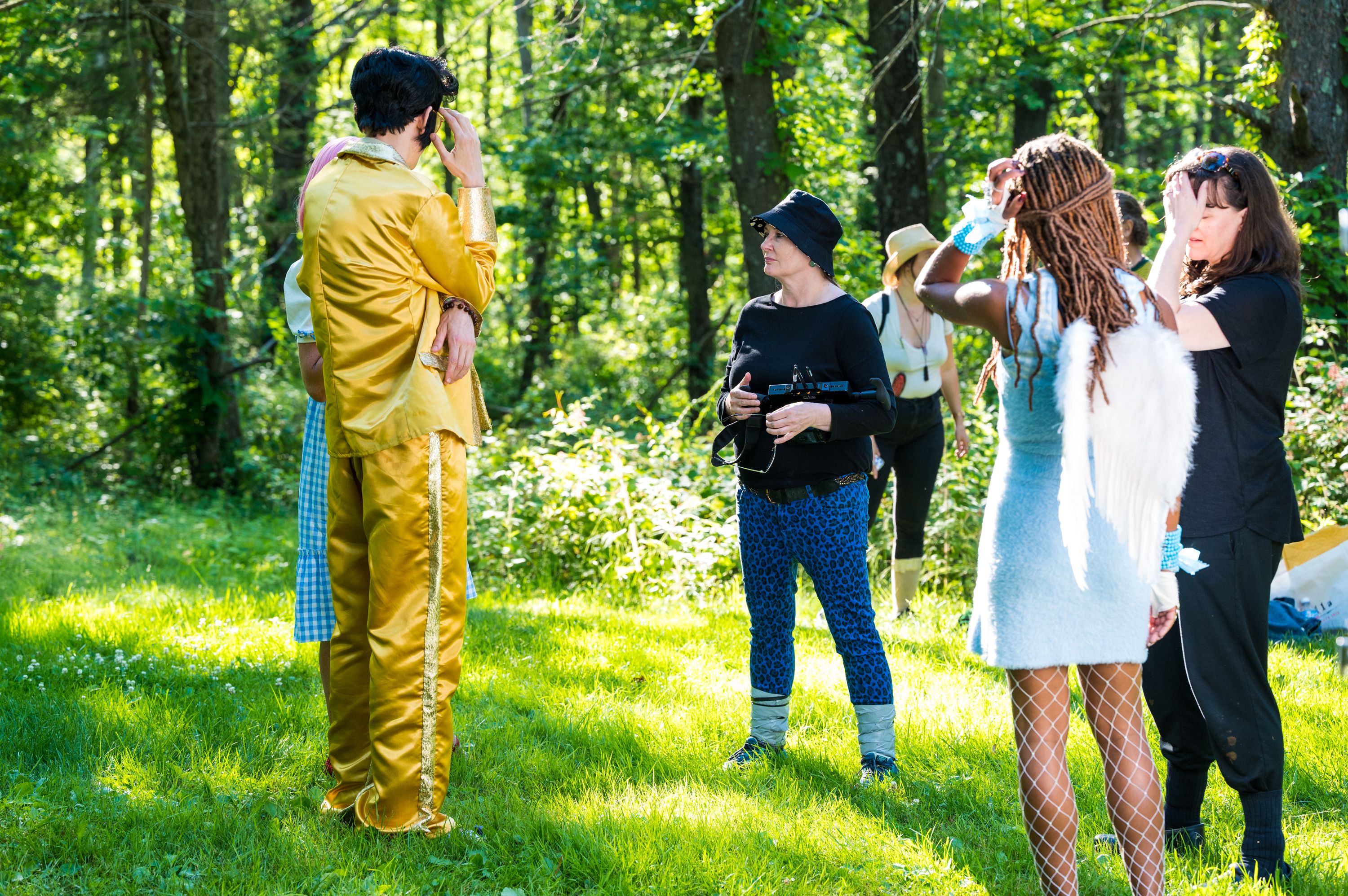 Imelda O’Reilly, center, directing “Suspicious Minds” on set at the Catwalk Art Residency in upstate New York.