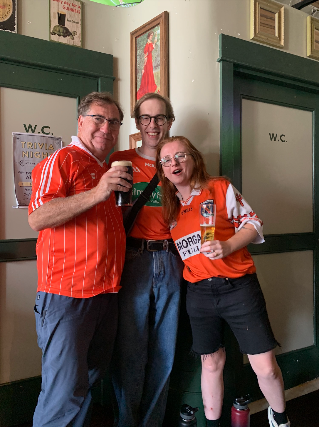 I entered the Clonnard and saw a sea of maroon kits and no orange ones, so it seemed I wouldn’t even have the consolation of watching with other Armagh supporters. Walking toward the bar, I got a hearty greeting from one of my favorite bartenders, The Old Town Bar’s Conor MacNamara proudly wearing his Galway kit. Smiling, Conor kindly invited me to join him and his family. Conor graciously bought me a pint and I remembered that our mutual love of Ireland and its sport transcended our differences.