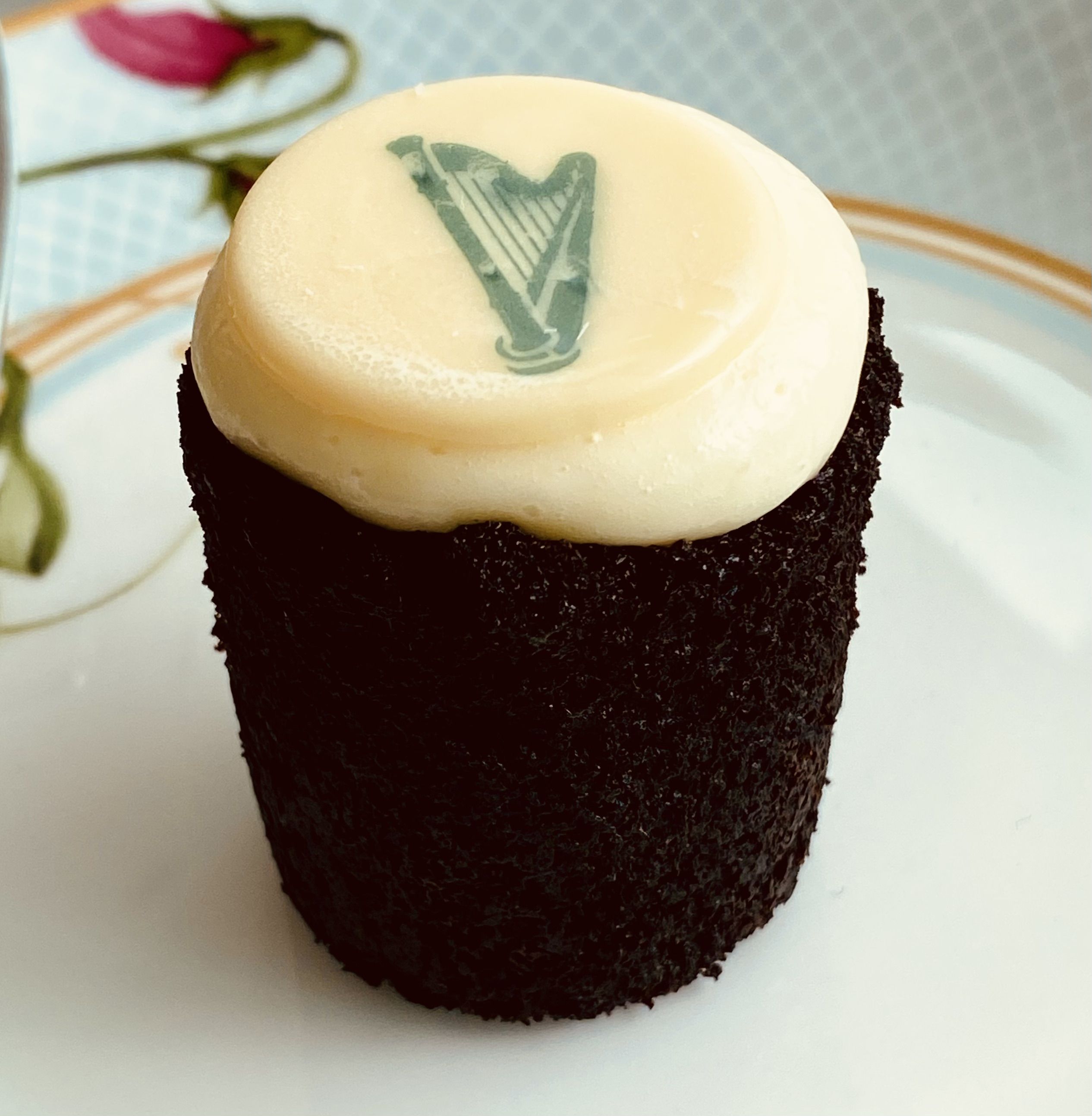 The Guinness Storehouse is one of Europe’s most popular attractions and a genuine Dublin landmark. Chef Mullens says, “When you visit the Storehouse, and you absolutely should, they’ll show you how to pour a perfect pint yourself, and now you can taste a mini, sweet version of that famous stout on our afternoon tea plate.” As a tribute to the iconic drink, Chef Ritzen and his team created this mini cake to look like a perfect pint of the “black stuff.” It’s served as part of the Tea Breads course (along with buttermilk scones, a fig pudding loaf, and the famous Marker Battenburg Cake, inspired by the hotel’s geometrical façade). Make the cakes in 2-ounce silicone molds for a pint glass shape; alternately, use a cupcake pan.
