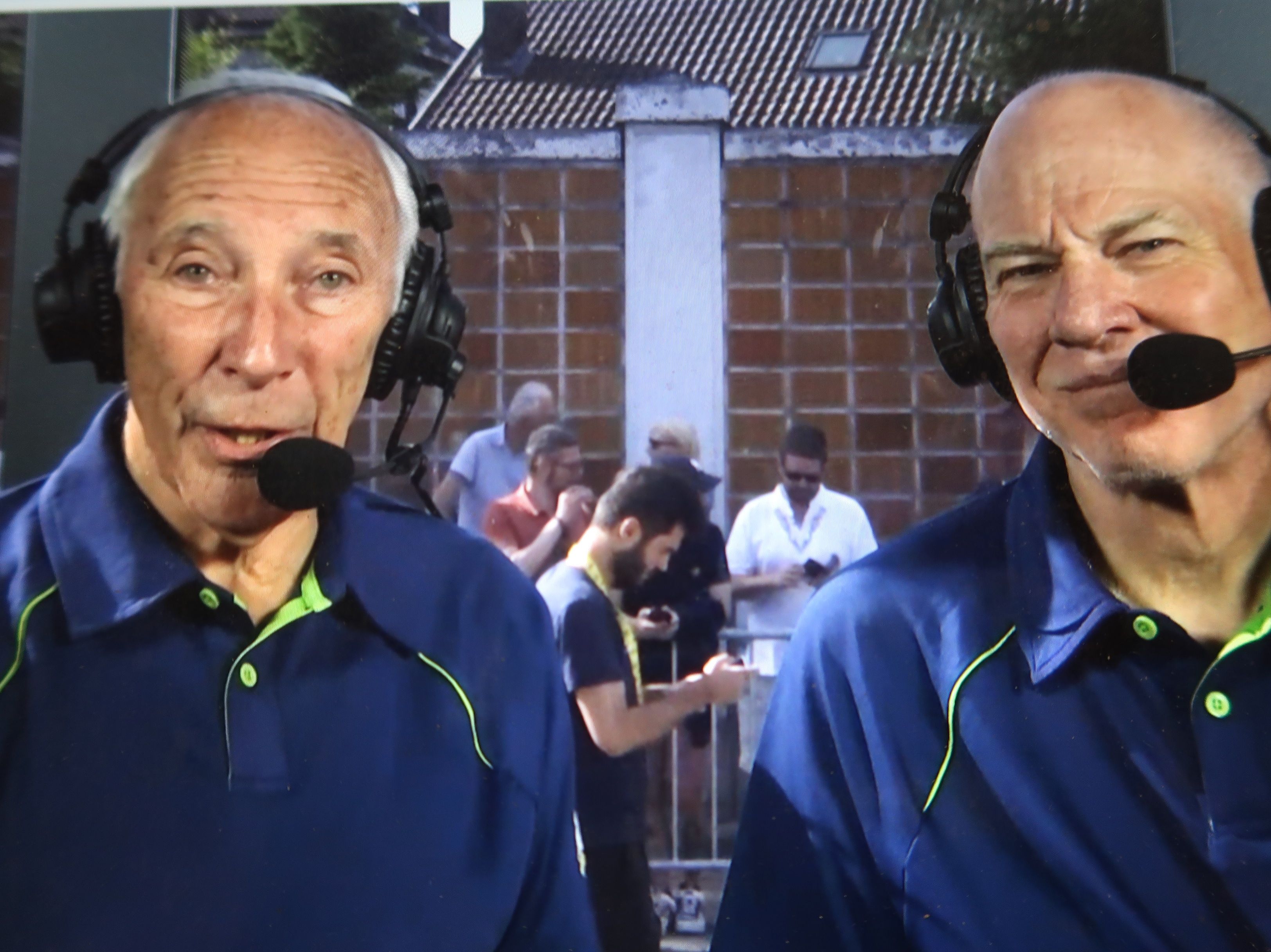 NBC Tour de France commentators Phil Liggett, left, and Bob Roll.