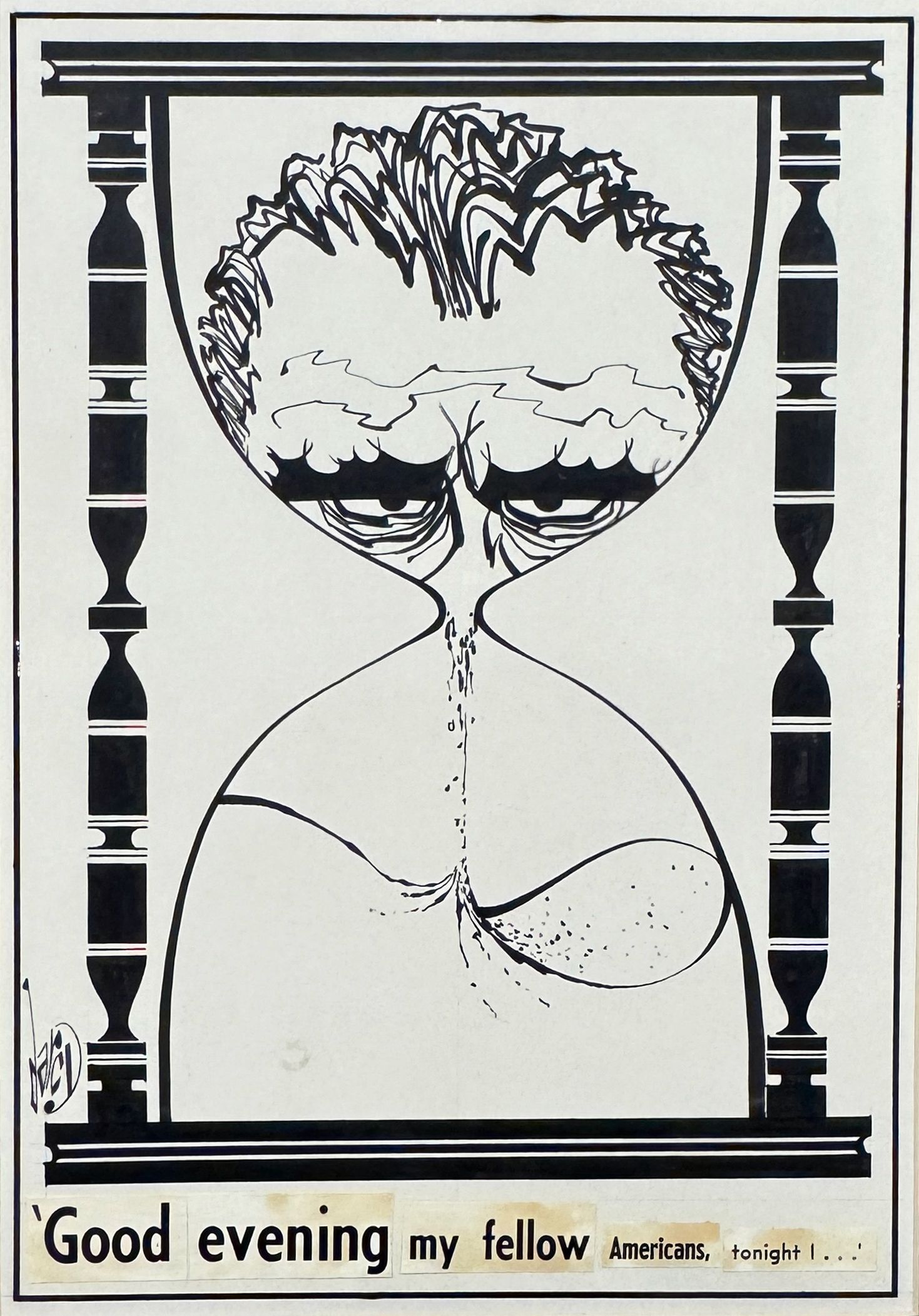 The president and the war were inevitably linked in some cartoons composed by the elder Darcy who was born into an Irish-American family in Brooklyn in 1932.