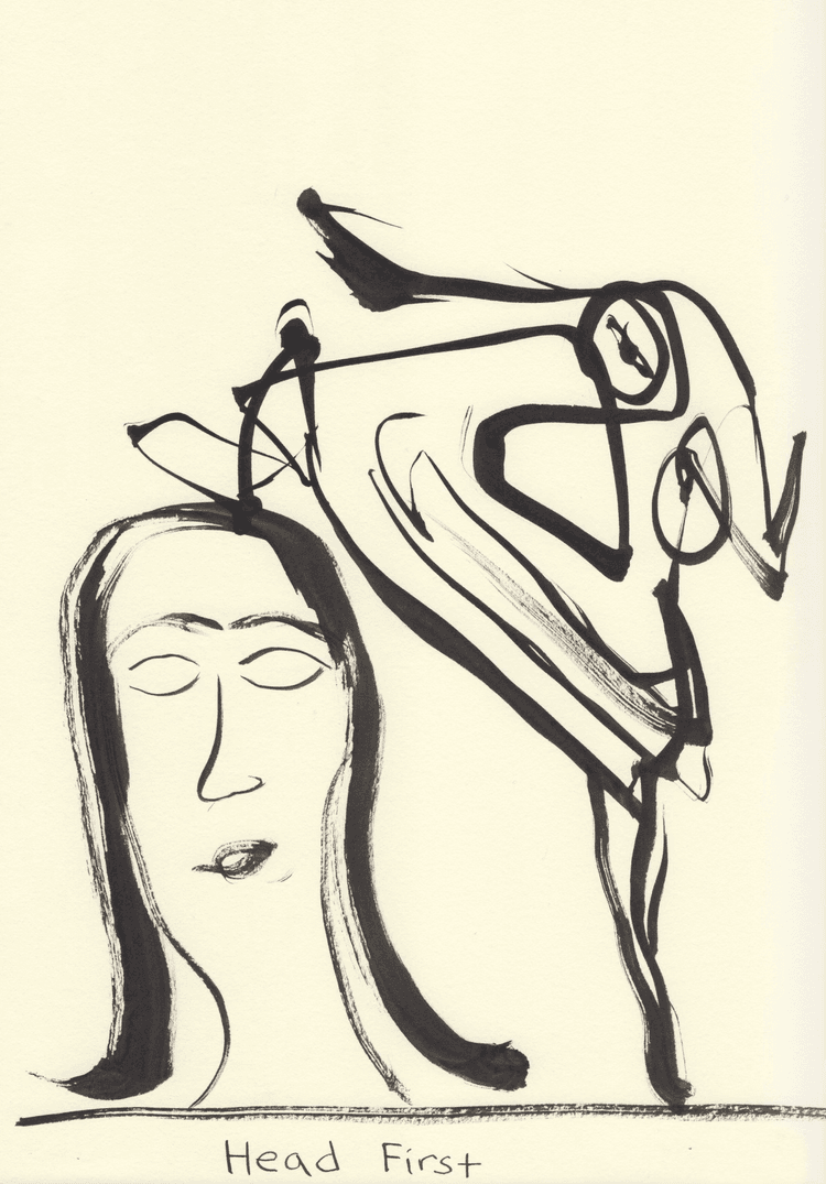 Brad Darcy, “Head First,” 2017-22, ink and pencil on paper, 12 x 9 inches.