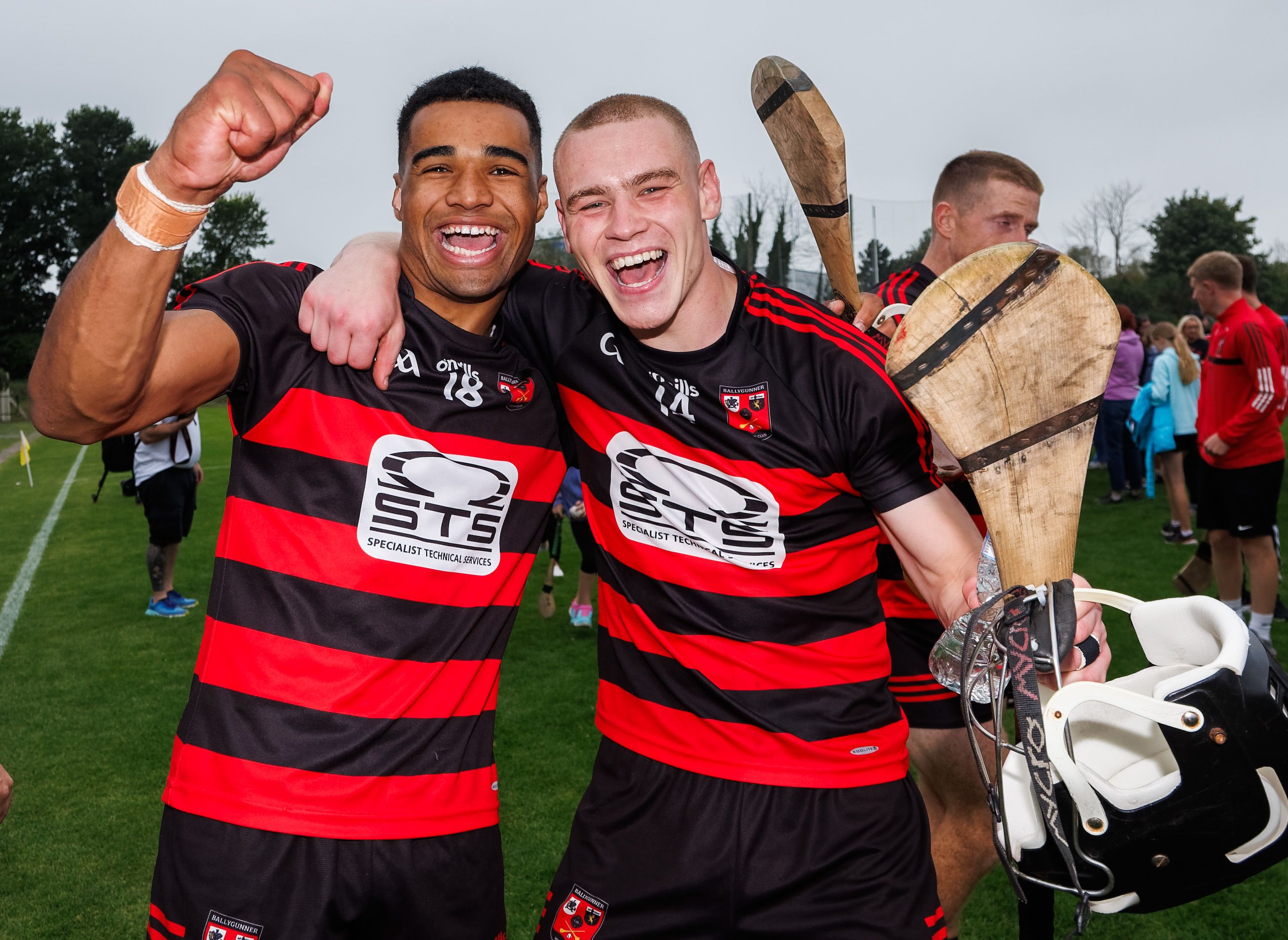 Ballygunner’s Conor Tobin, left, and Kevin Mahony celebrate their club’s 11th consecutive Waterford title. [Inpho/James Crombie]