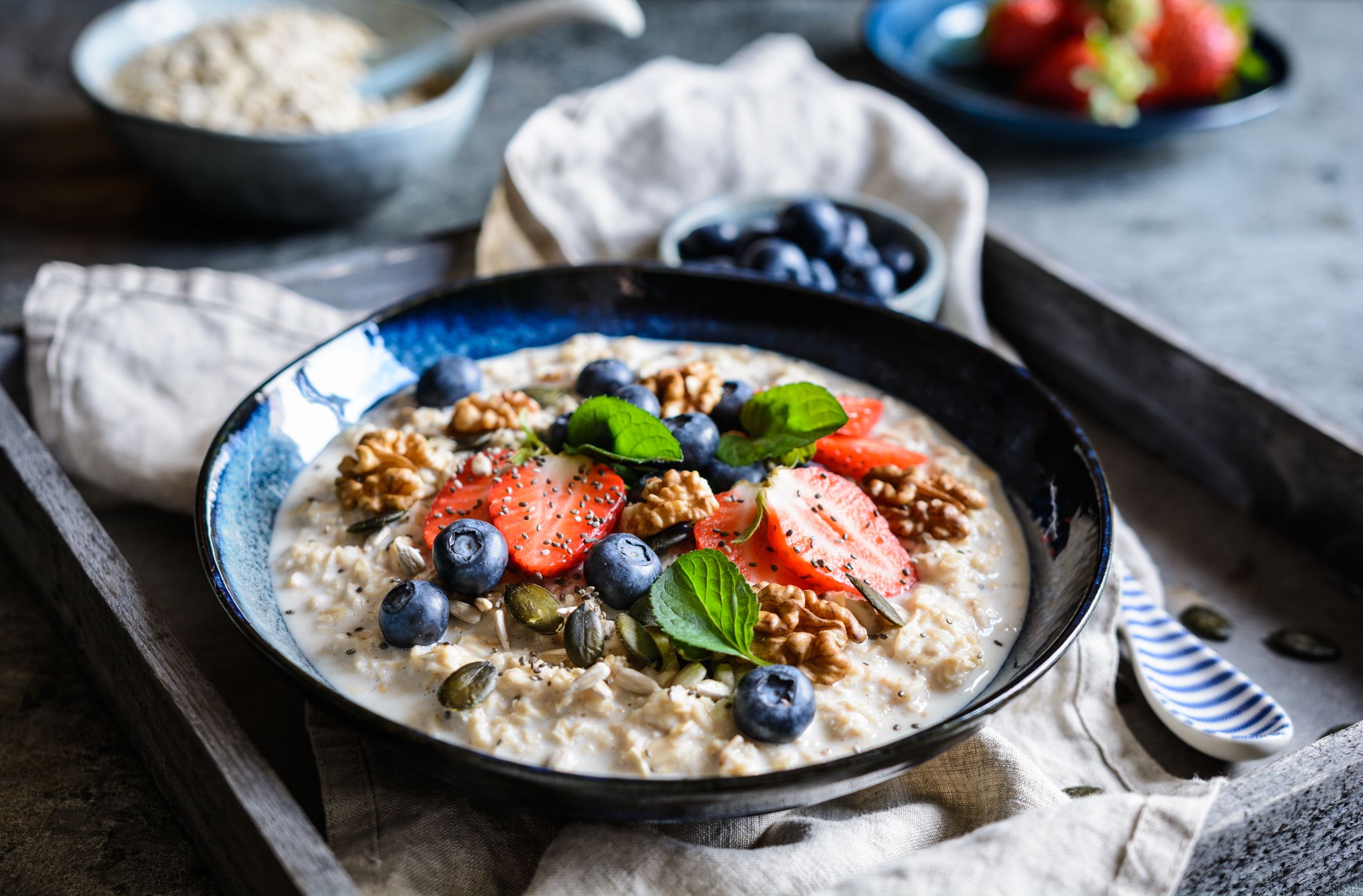 Rolled oats are a key ingredient in granola, a crunchy breakfast food made with dried fruits and nuts. It’s delicious sprinkled over fresh fruit and topped with natural yogurt.
