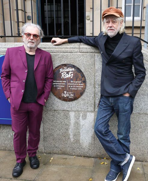 Pic of Day: Bob Geldof and Pete Briquette of The Boomtown Rats return to Technological University Dublin’s Bolton Street campus to unveil a commemorative plaque marking 50 years since the band’s first gig at the venue, which was then Bolton Street Technical College, in 1975. The event celebrates the band’s cultural legacy and the transformation of Ireland over five decades, from economic hardship to global recognition for progress in education, employment, and equality. Photo by Leah Farrell/RollingNews.ie.