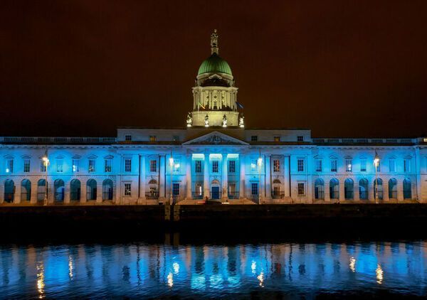 Pic of Day: The Custom House in Dublin joined iconic landmarks around the world in lighting up in teal for World Cervical Cancer Elimination Day. Photo by Sasko Lazarov/Photocall Ireland.