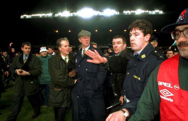 Pic of Day: Just released Irish government State Papers reveal that the Garda reserve numbers present at Landsdowne Road for the February, 1995 soccer match between Ireland and England were "insufficient." England fans rioted and Irish manager Jack Charlton (pictured) an English footballing hero, had to be escorted to safety. RollingNews.ie file photo.