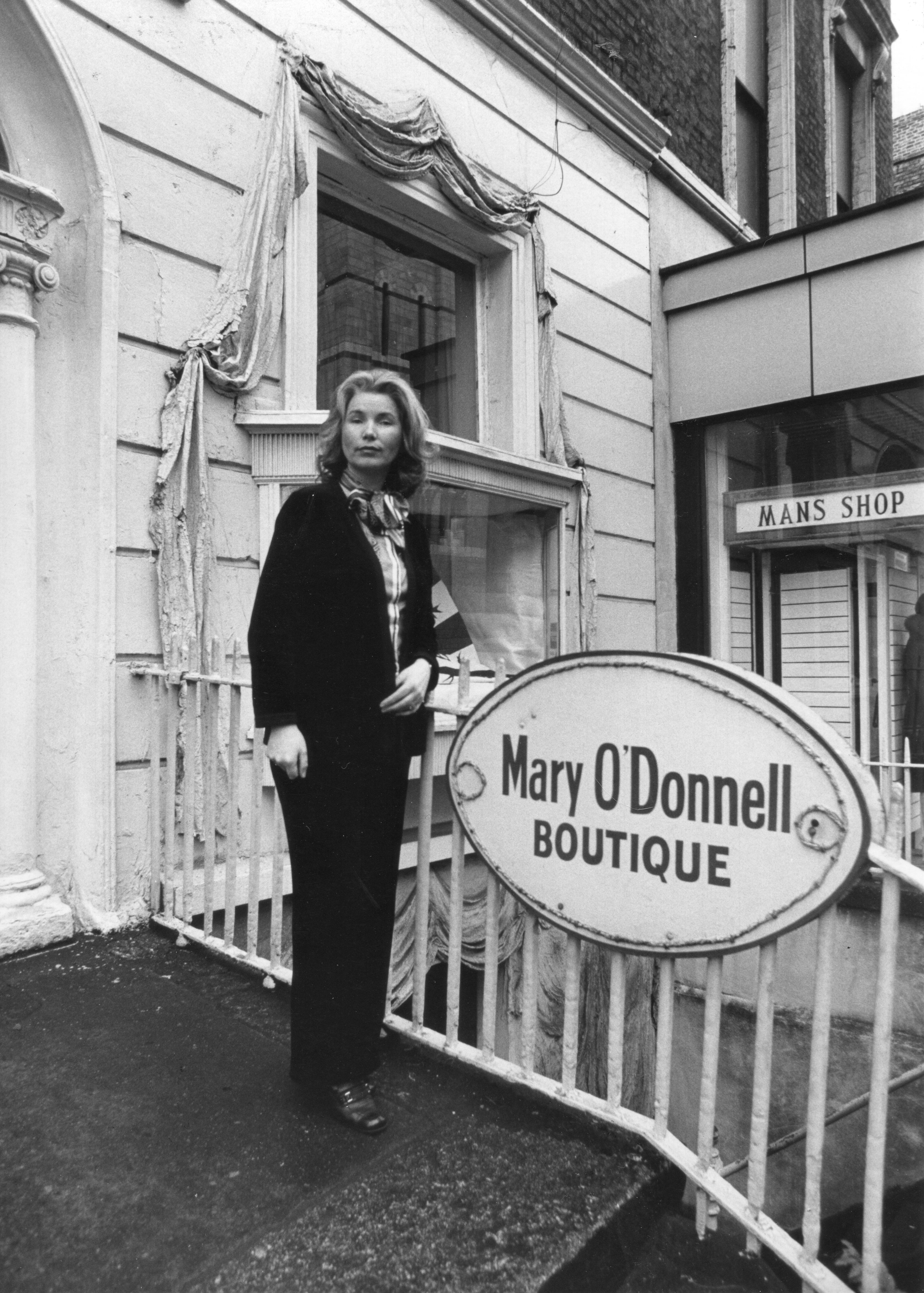 After closing her Dawson Street premises in 1983, O’Donnell returned to work in the U.S. where she maintained a strong following of loyal private clients. Thereafter, she divided her time betweenAmerica and Ireland. She finally retired in 1995, returning initially to Dublin and then to Kilcar. Until recent years she continued to travel and enjoyed entertaining her many friends from the world of fashion and beyond.
