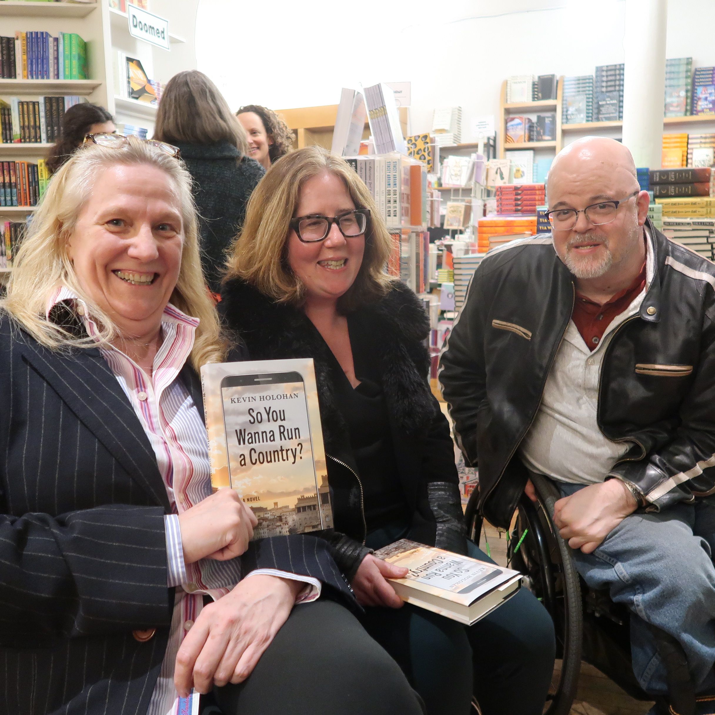 Honor Molloy, Michelle Woods and Brendan Costello pictured at the Brooklyn launch of Kevin Holohan’s novel “So You Want to Run a Country?” last spring.