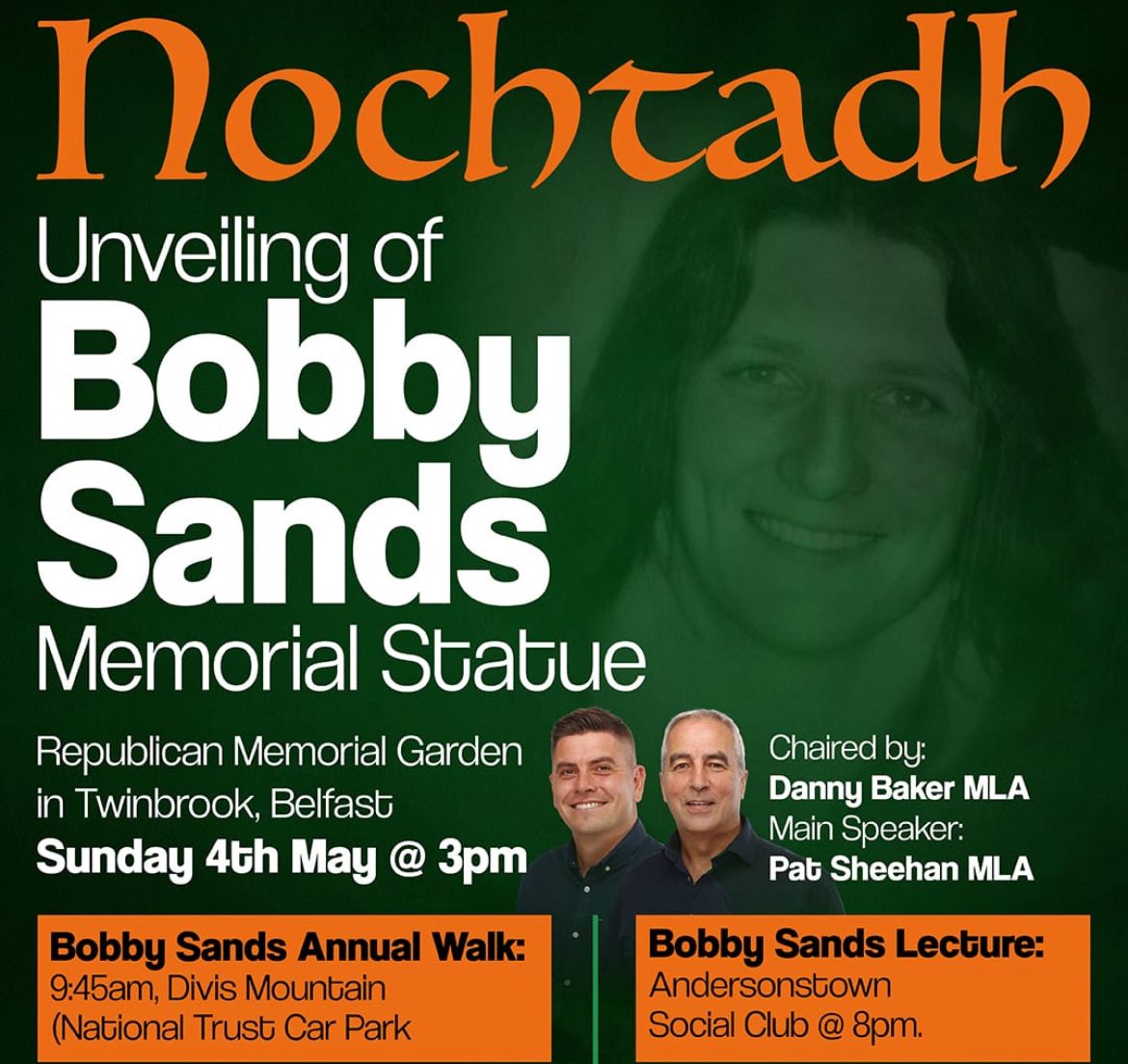 There will also be a Bobby Sands Mountain Walk that morning and the annual Bobby Sands lecture will be given that evening by Pat Sheehan in the Andersonstown Social Club.
