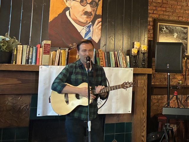 Lastly, Karl McHugh, originally from Donegal, now a San Francisco-based songwriter, returned to our Slainte Salon with four fabulous originals that riveted the audience. He wrote “Gold” during a crisis of confidence, which is crazy, as he is very talented. It’s a rock anthem to keep pushing and digging till you find gold.