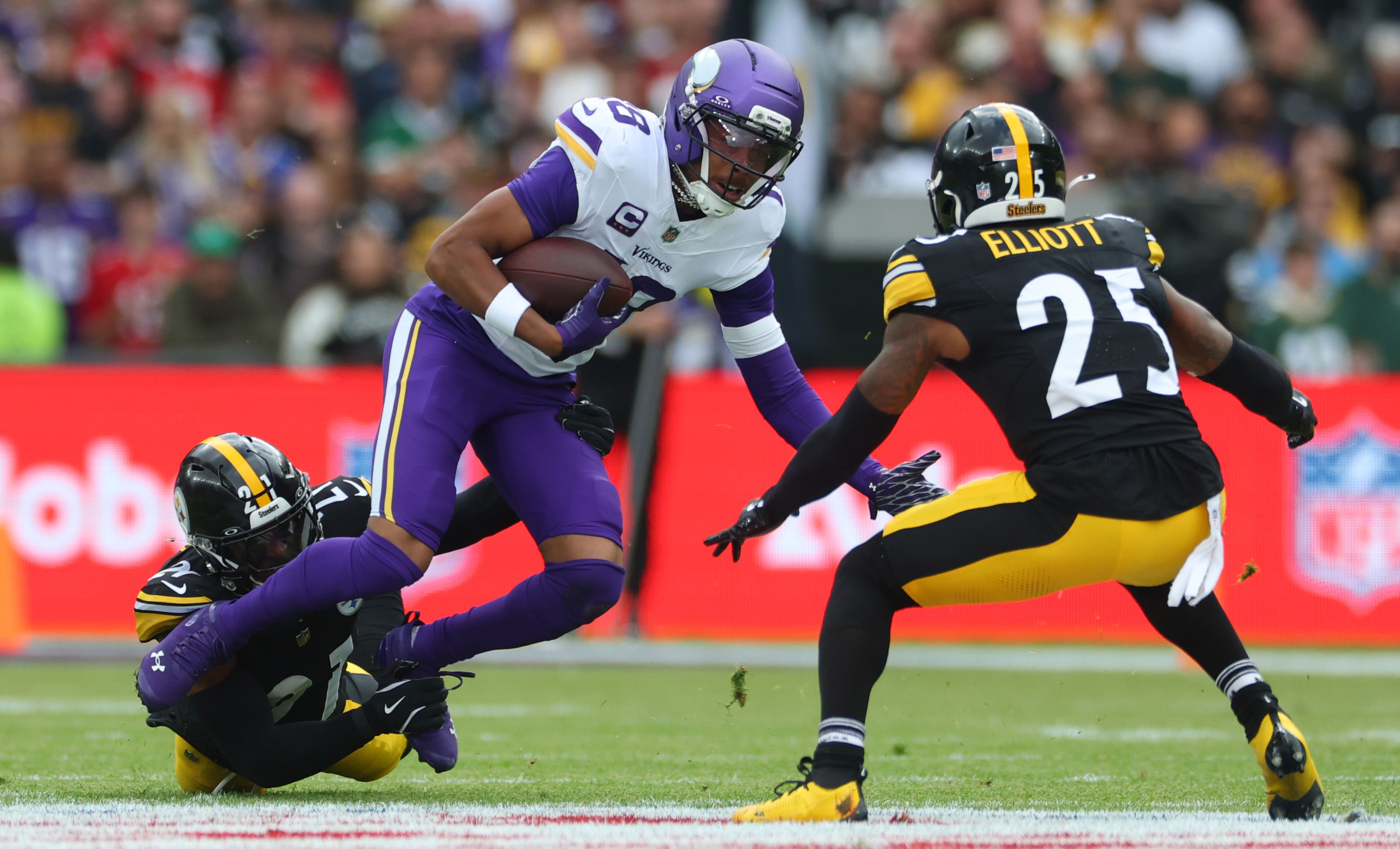And so the scene was set for a game which attracted 74,512 fans and saw the “home” team emerge victorious by 24-21. The huge crowd were kept right on the edge of their seats to the end as Kenneth Gainwell rushed for 99 yards and two touchdowns and Aaron Rodgers passed for another score in the winning colors.