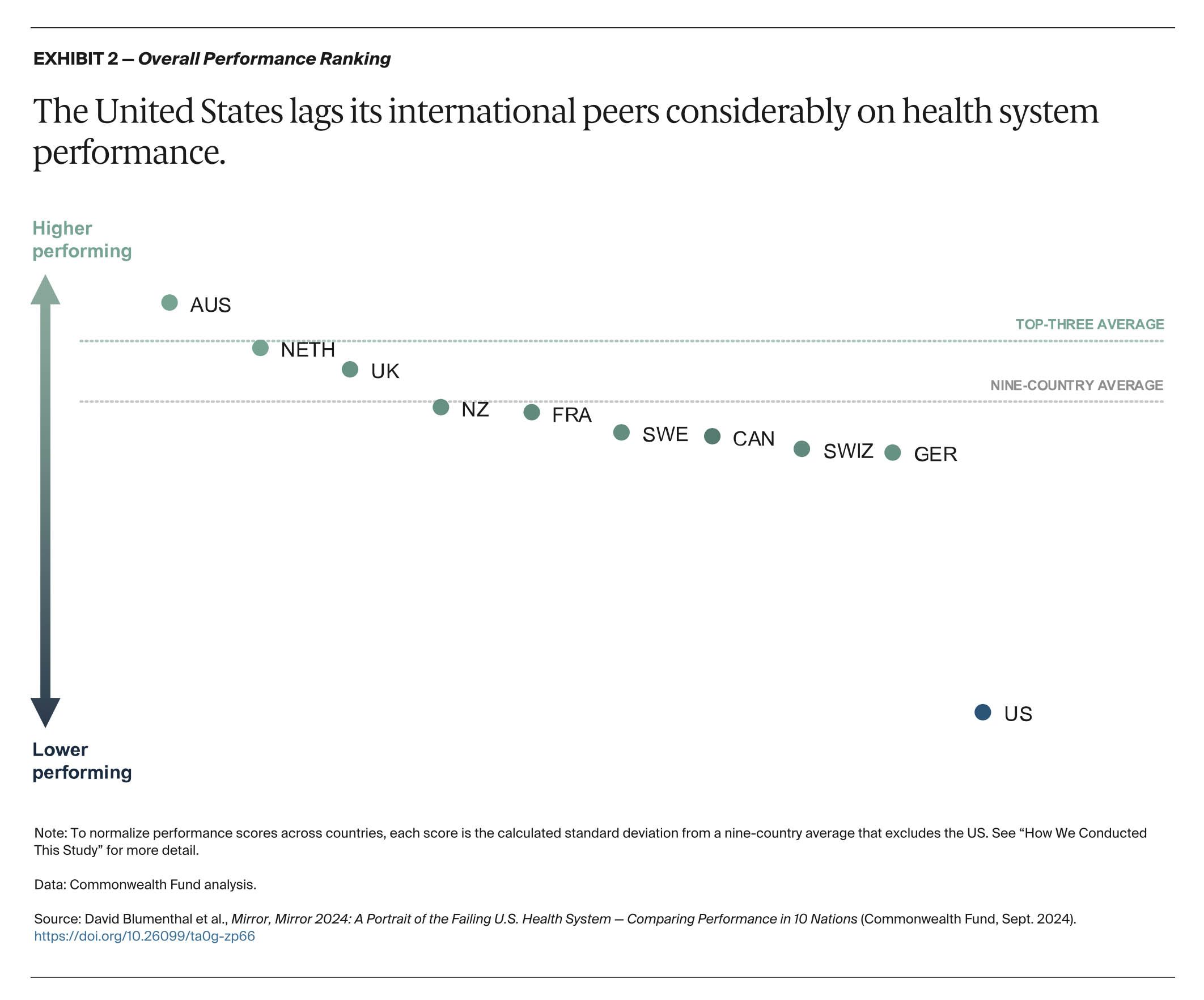 “Mirror Mirror” 2024 analyzed Australia, Canada, France, Germany, the Netherlands, New Zealand, Sweden, Switzerland, the United Kingdom, and the United States. It did not include Norway, the best performing nation in the previous report, because it exited in 2022 the International Health Policy Survey, which is based on interviews with physicians and patients.
