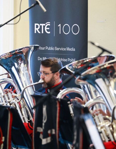 Members of the Army No. 1 Band performed inside Dublin’s General Post Office Thursday as RTÉ marks 100 years of public broadcasting with a full day of live radio programs from the historic building on Dublin's O'Connell Street. The broadcasts form part of the official launch of RTÉ’s centenary celebrations, commemorating the first Irish public radio transmission in 1926 and the GPO’s role as the home of Radio Éireann for decades. Photo by Sasko Lazarov/RollingNews.ie.