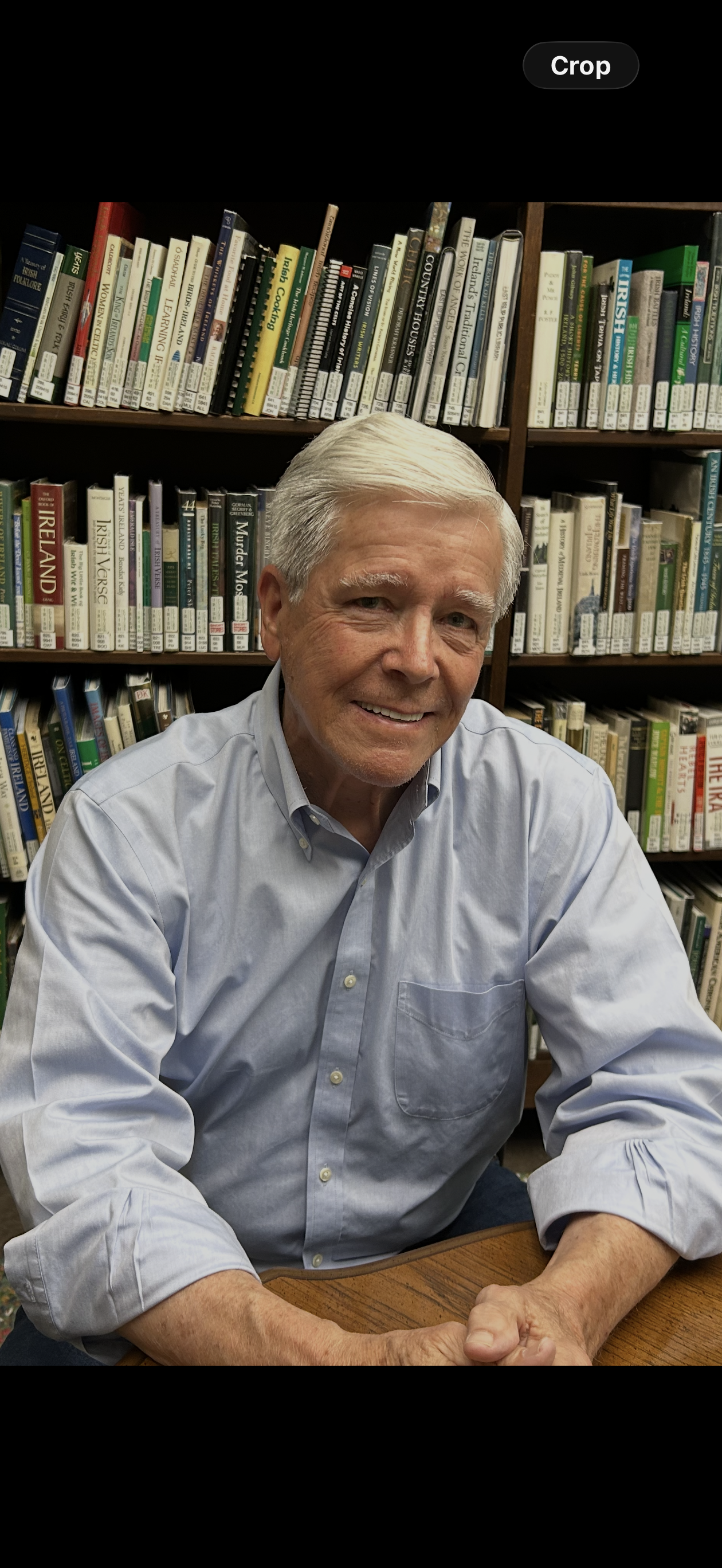 In the last 13 years it has grown by leaps and bounds to a collection of nearly 600 books, as well as showcases filled with Irish China and Waterford Crystal. The room additionally abounds with pictures of the Irish countryside, famous Irish authors and Irish family crests.