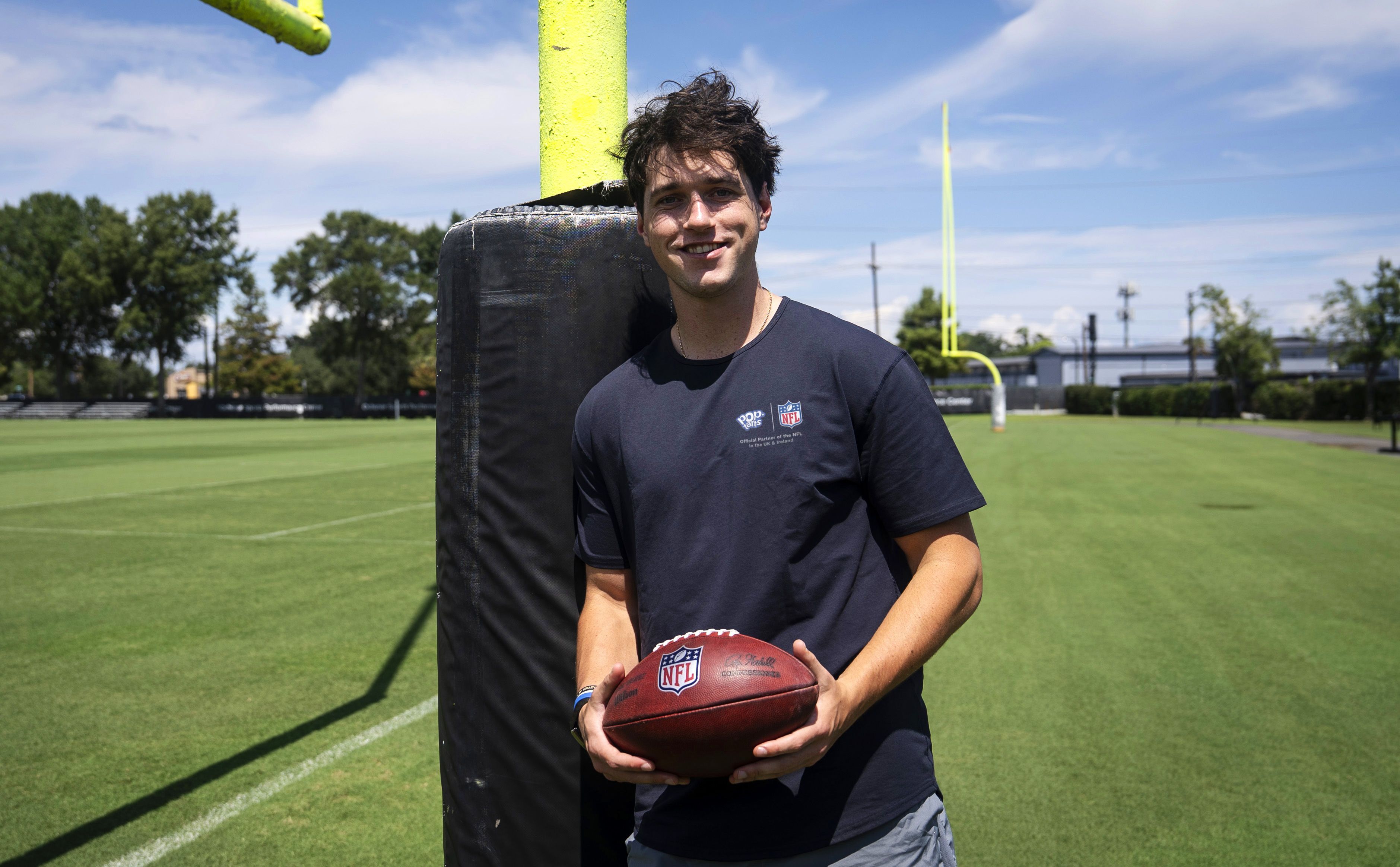 Growing up playing Gaelic helped develop Smyth’s powerful kicking skills. After graduating college as a primary school teacher in the summer of 2023, Smith signed up for a master’s program in Belfast but ended up pursuing the NFL instead. He joined the league’s International Player Pathway Program. His accuracy and strong leg got him a tryout with the Saints, who signed him to a reserve/future contract in January, a contract that the team could’ve voided at any moment and no guarantee that he would join the Saint’s regular roster and receive the $840,000 league minimum salary each NFL player earns. Impressed by his kicking in the pre-season the Saints signed him to the practice squad at the end of August. Practice squad players are paid but are not officially part of the team roster and earn far less than those players who make the roster.