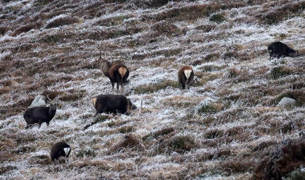 Pic of Day: A group of Sika Deer nibbling at the frost nipped vegetation in the Wicklow Mountains. RollingNews.ie photo.