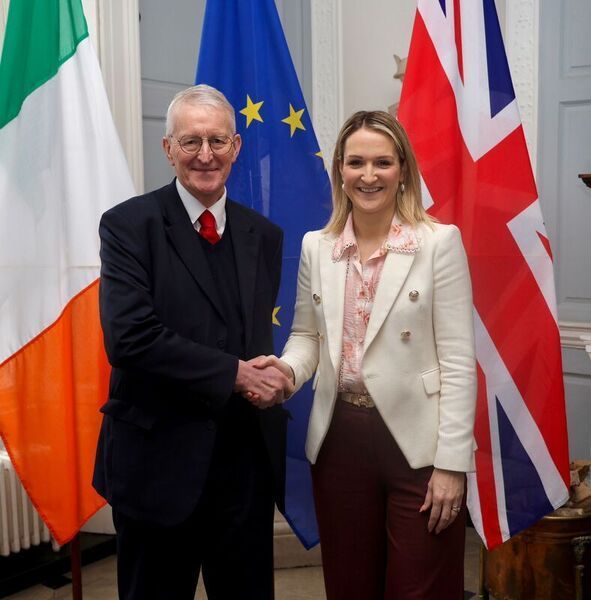 Pic of Day: Minister of Foreign Affairs and Trade Helen McEntee met with Secretary of State for Northern Ireland Hilary Benn in Dublin. They discussed addressing the legacy of the Troubles and political developments in Northern Ireland, including the ongoing implementation of "The Legacy of the Troubles: A Joint Framework," agreed in September between the Irish and British governments. Photo: Department of Foreign Affairs via RollingNews.ie.