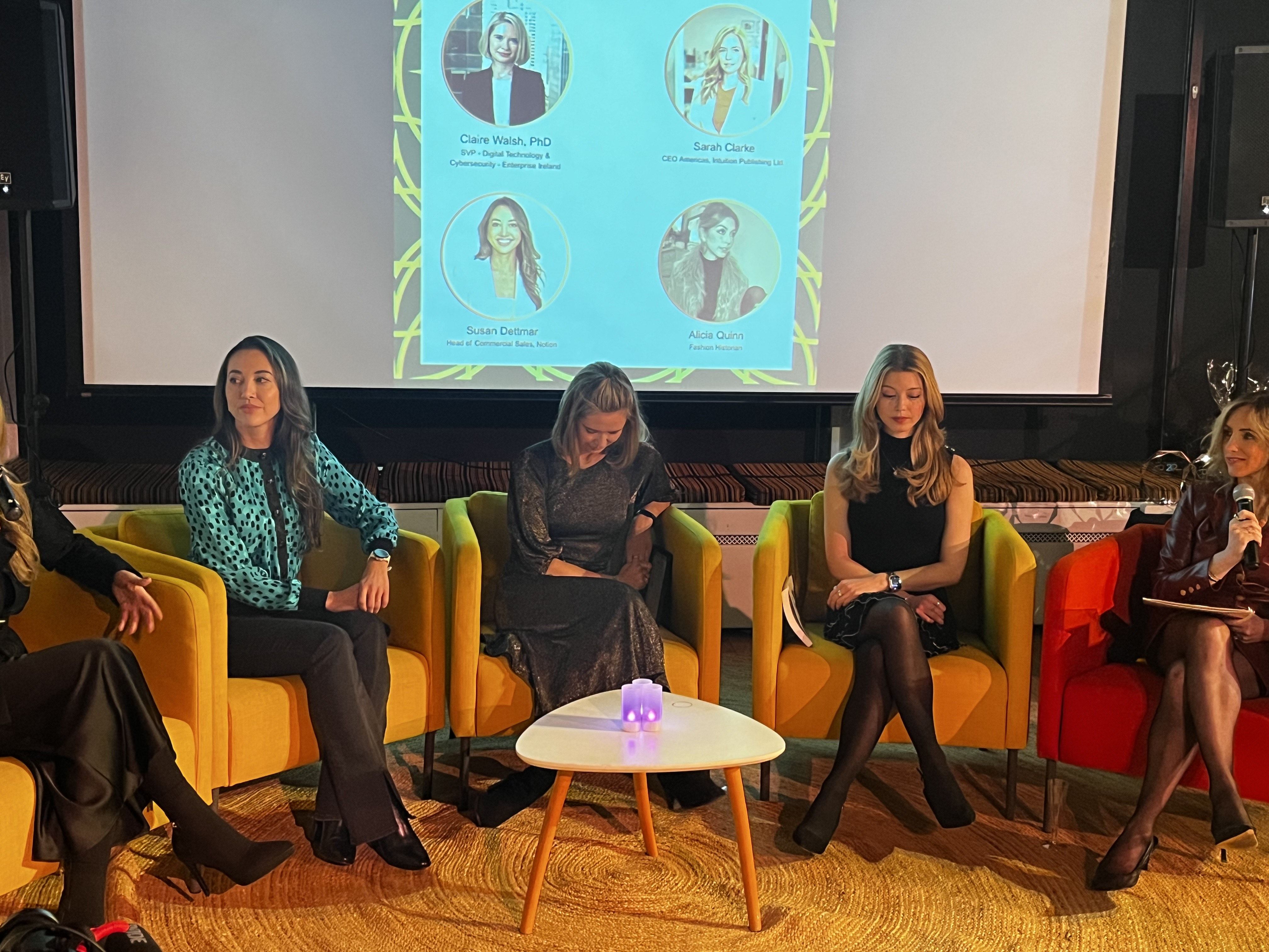 Instead, “mna na h-Eireann” talked about unlikely paths into what they do now: from art college to CEO, in the case of Sarah Clarke, CEO America’s for Intuition, a Dublin-based online learning firm; or from a doctorate in science into promoting Irish tech and cybersecurity firms abroad for Claire Walsh PhD and Senior Vice President of Enterprise Ireland.