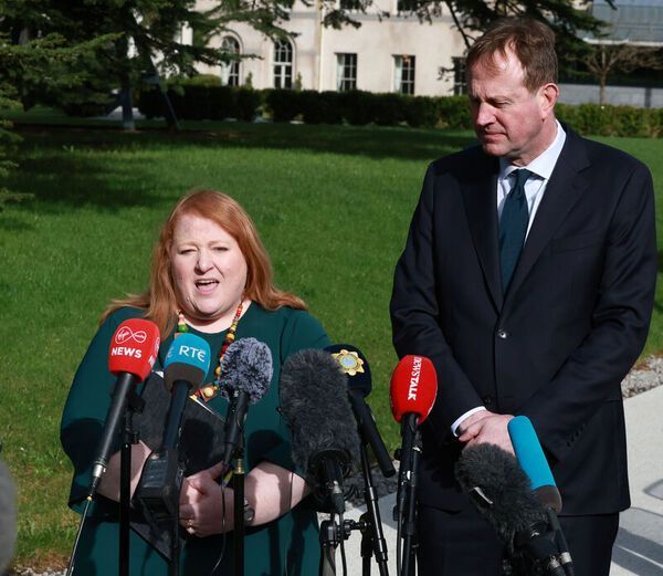 Pic of Day: Irish Minister for Justice Jim O'Callaghan and Northern Ireland Minister of Justice Naomi Long speaking to the media during a press conference before the AGS/PSNI Cross Border Conference on Organised and Serious Crime at Farnham Estate in County Cavan. The conference provides an opportunity for keynote speakers from An Garda Síochána and the Police Service of Northern Ireland to discuss and share activities, experience and knowledge. The theme of thus year's two-day conference is Tackling the Business Model of Organised Crime One Threat Shared Responsibility. Photo by Sasko Lazarov/RollingNews.ie