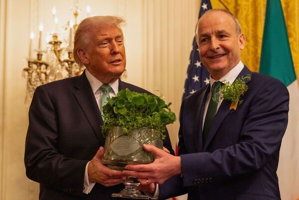 Pic of Day: Taoiseach Micheál Martin presented an Irish-made crystal bowl containing fresh shamrock to President Trump at the White House Tuesday. Photograph: Irish Government Information Service via RollingNews.ie.
