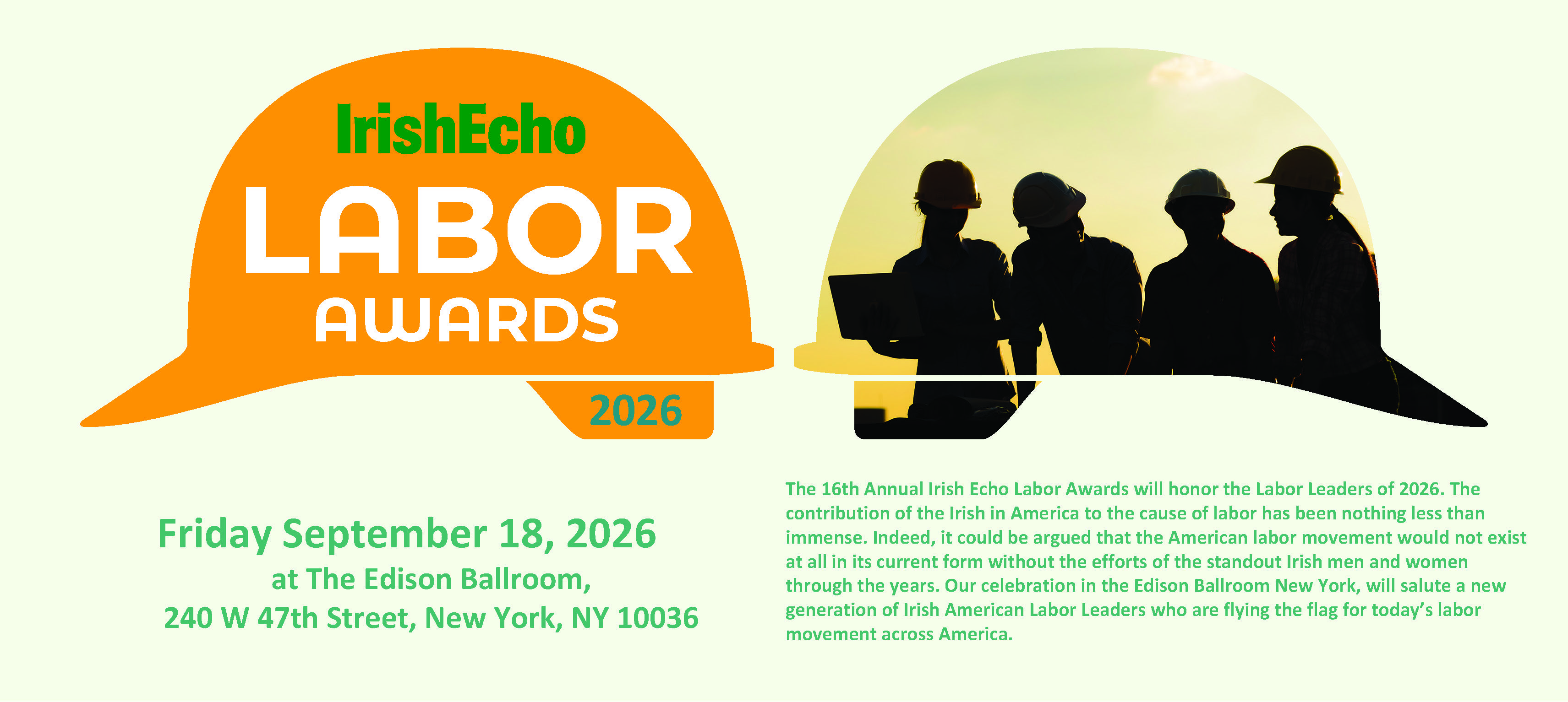 The 16th Annual Irish Echo Labor Awards will honor the Labor Leaders of 2026. The contribution of the Irish in America to the cause of labor has been nothing less than immense. Indeed, it could be argued that the American labor movement would not exist at all in its current form without the efforts of the standout Irish men and women through the years.